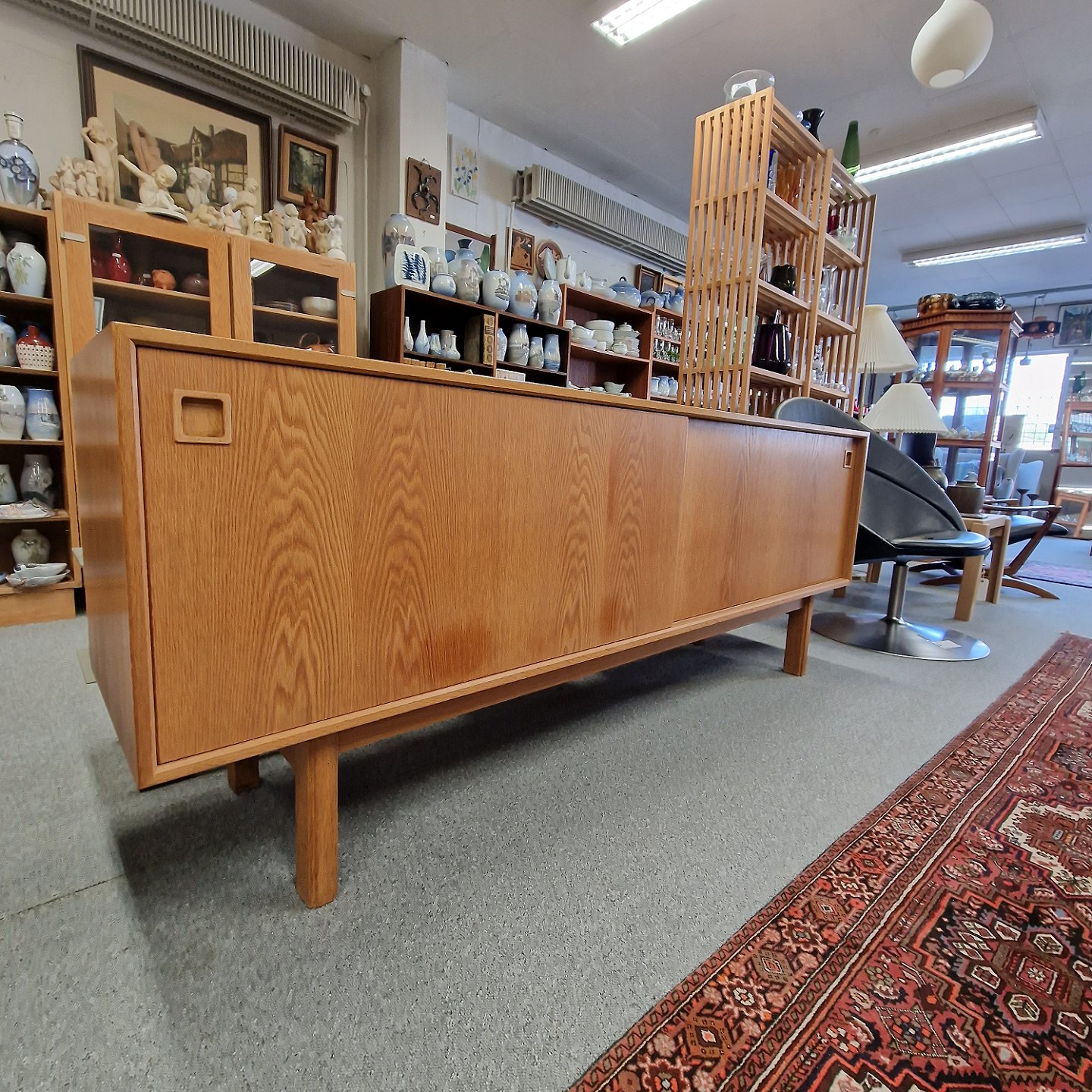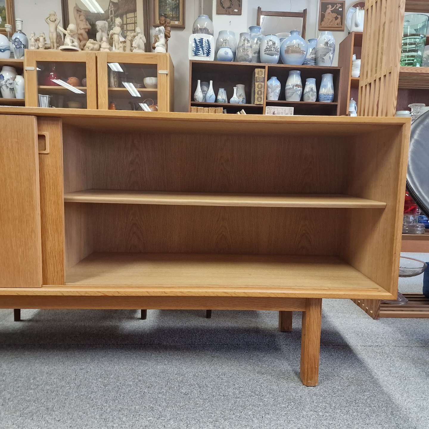 Egetræsskænk med to skyde låger. To hylder i den ene side og fire skuffer i den anden. No 01.044
