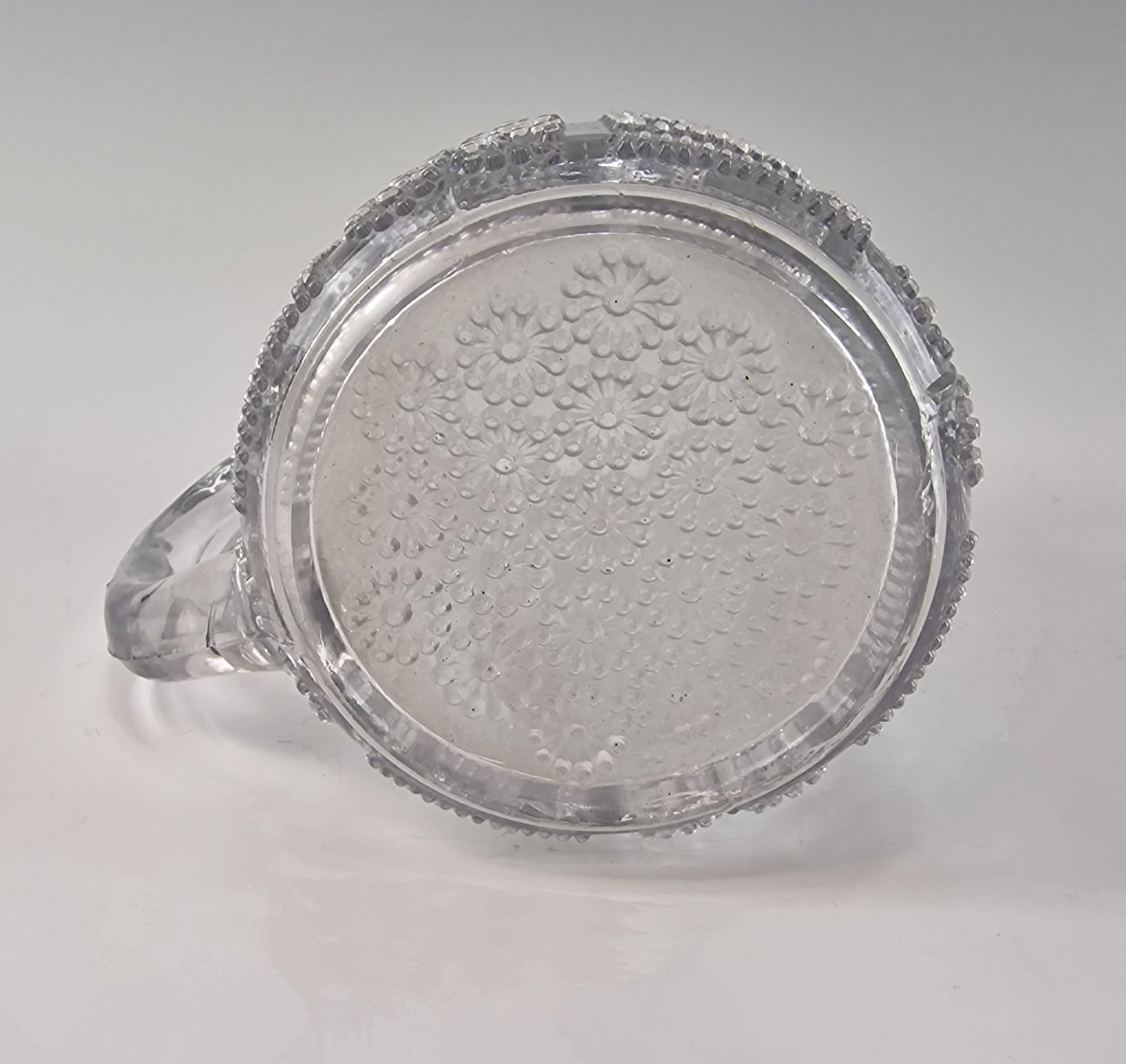 Glaskande med hank og hældetud, dekoreret med mange mønstre
