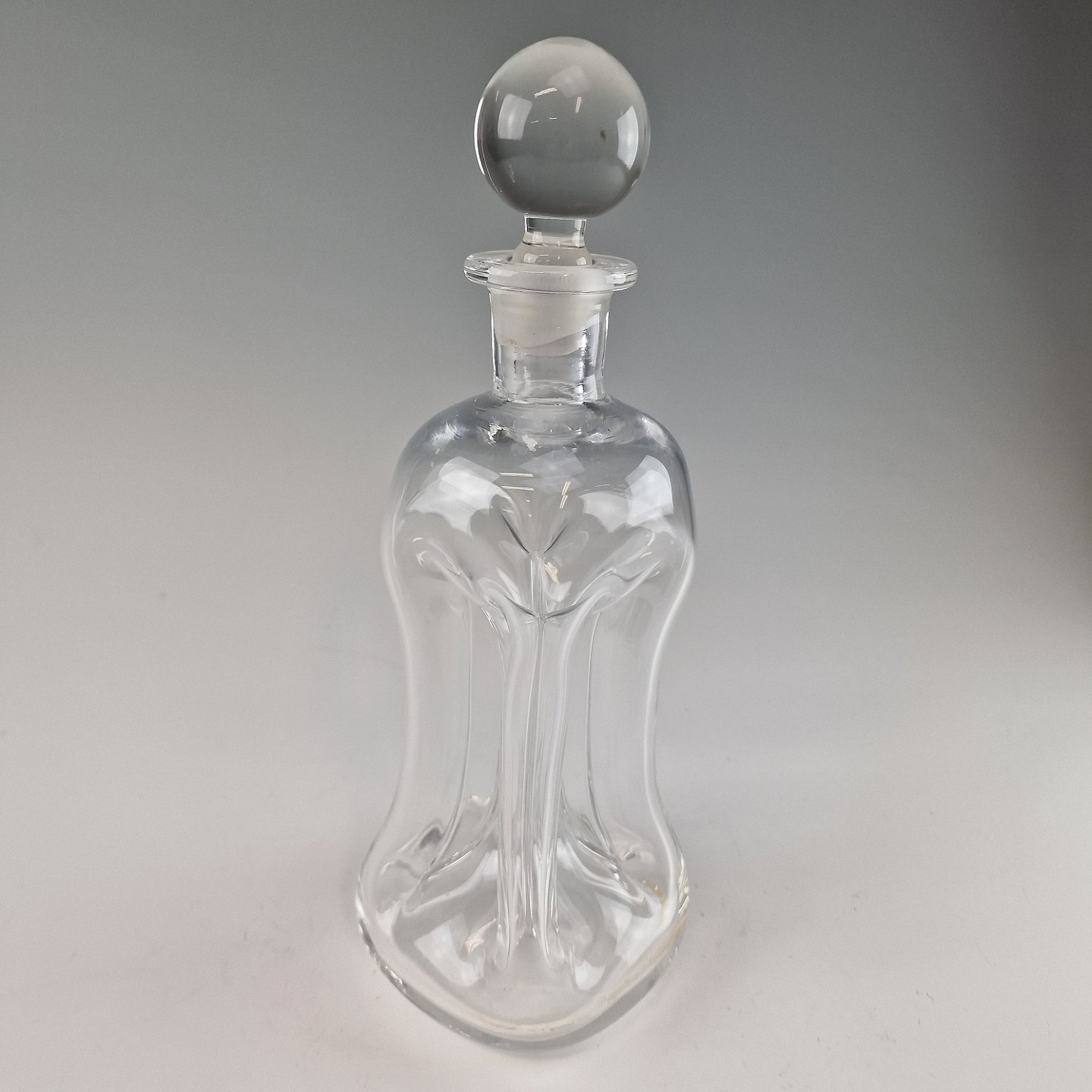Den ikoniske klukflaske i mundblæst klart glas og med kugleformet glasprop
