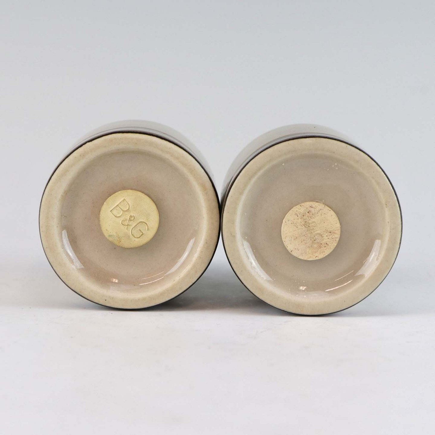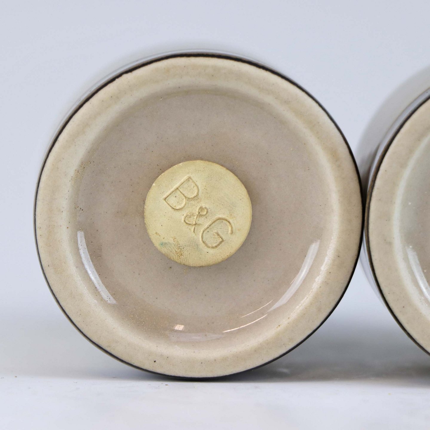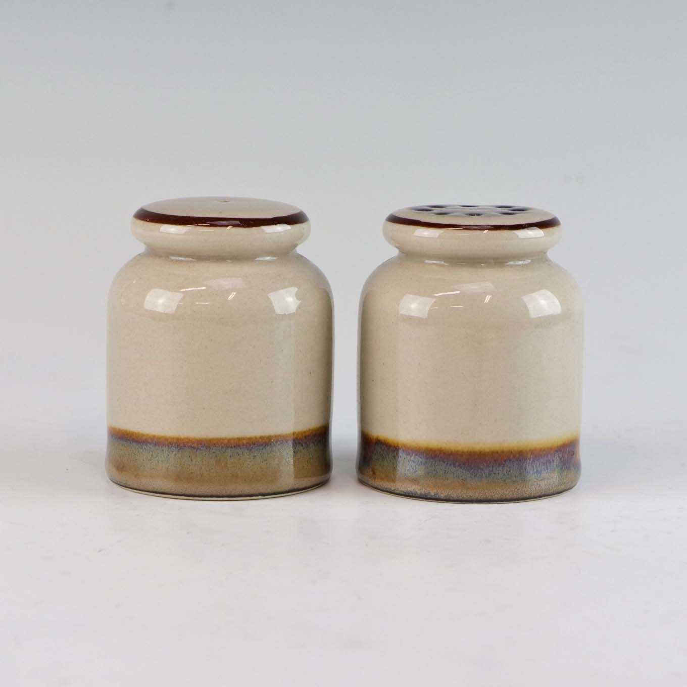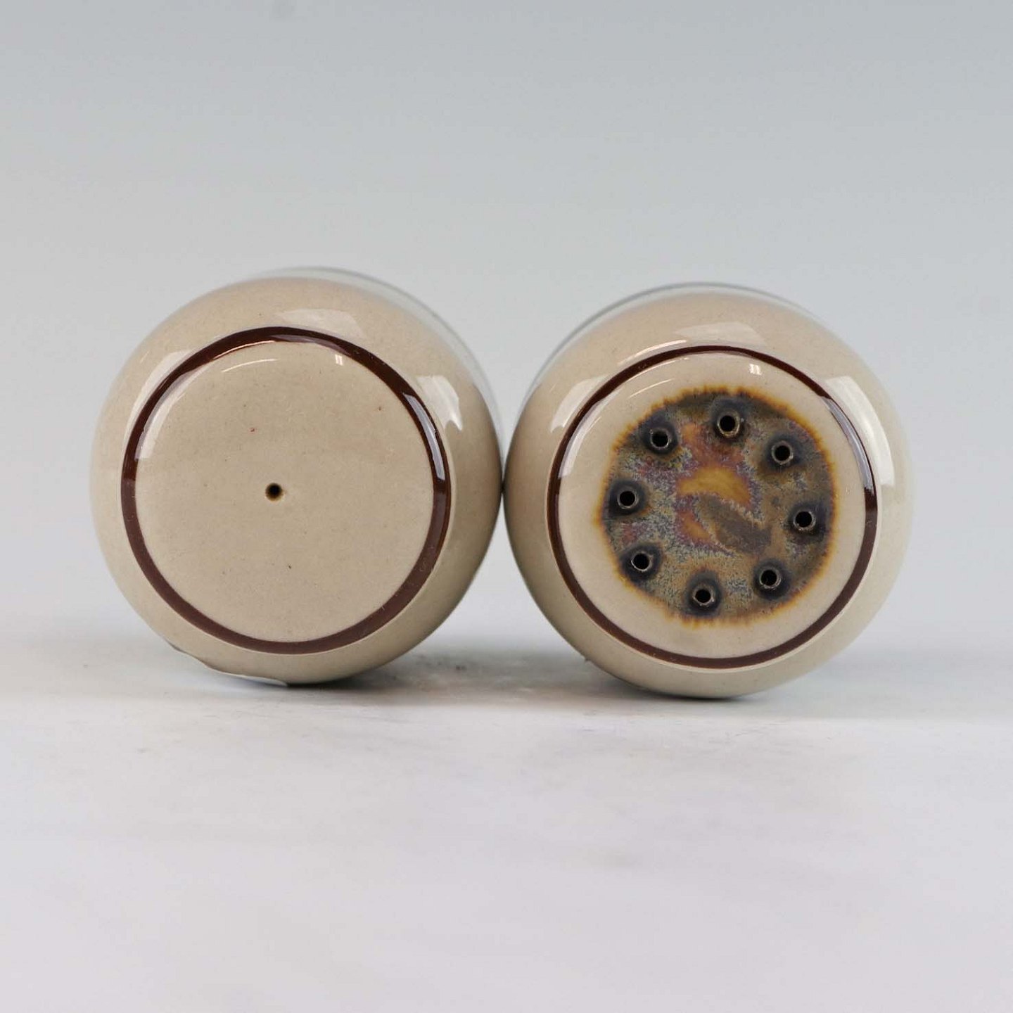 Stellet Peru er af stentøj, glaseret med lys grå farve og dekoreret med bånd af grøn/brunlige farve