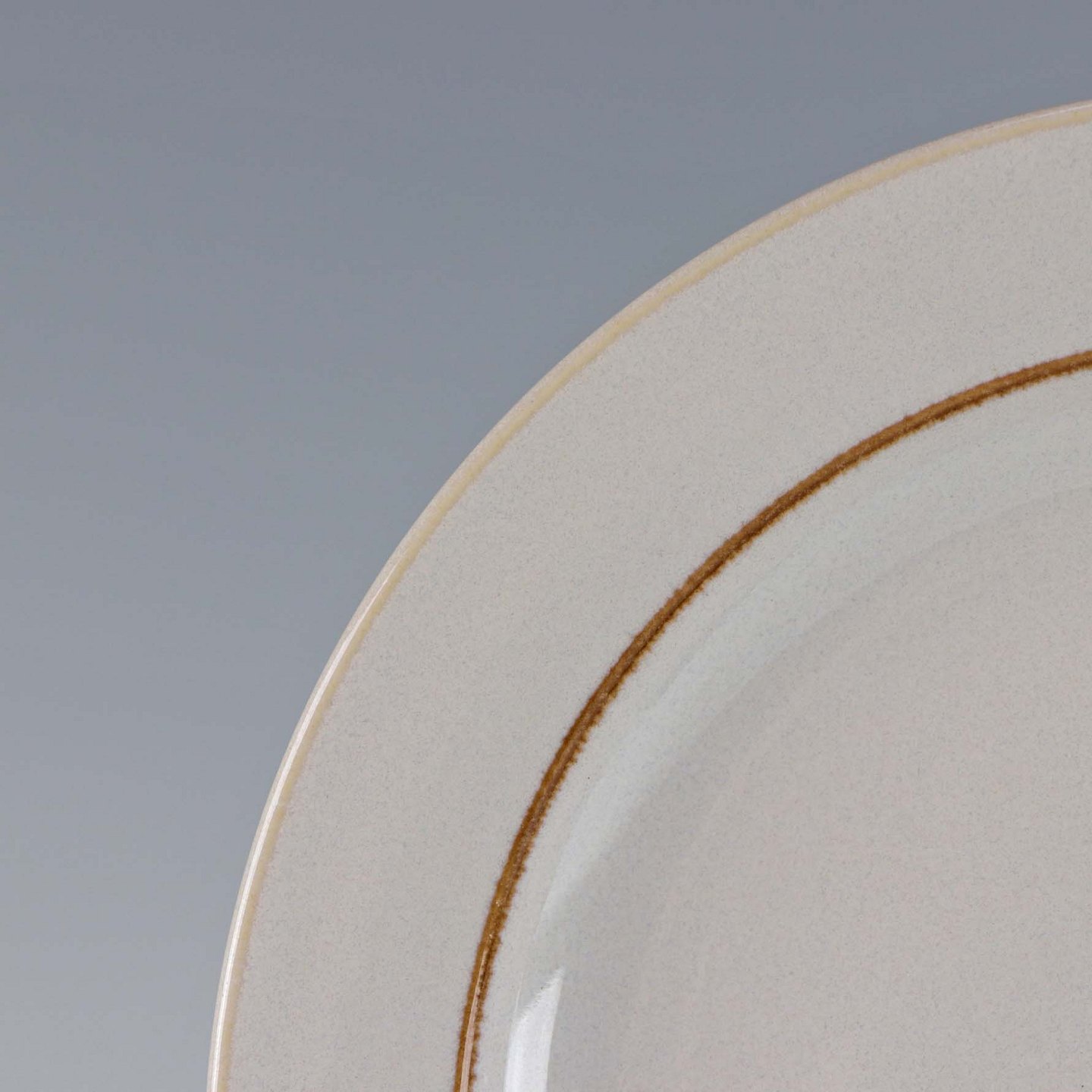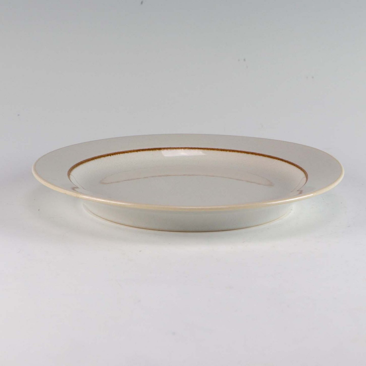 Stellet Coppelia er glaseret hvidt stentøj, dekoreret med kanter af lys brun farve