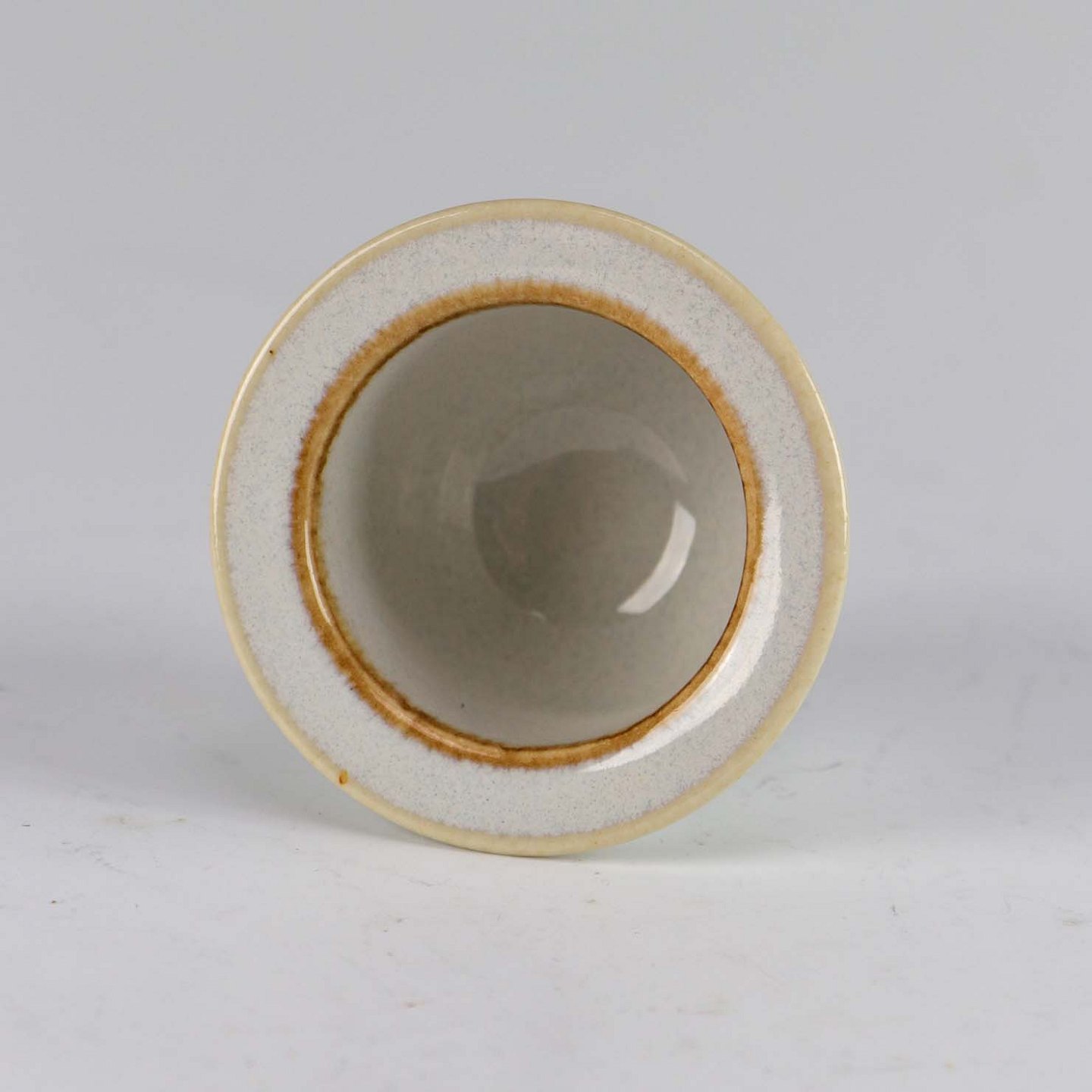 Stellet Coppelia er glaseret hvidt stentøj, dekoreret med kanter af lys brun farve
