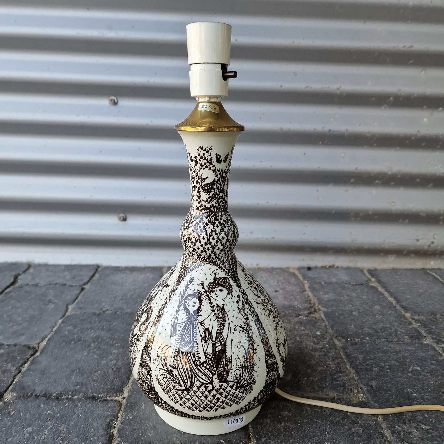 Dekoreret med damer i sort brun farve, med messing top under hvid fatning