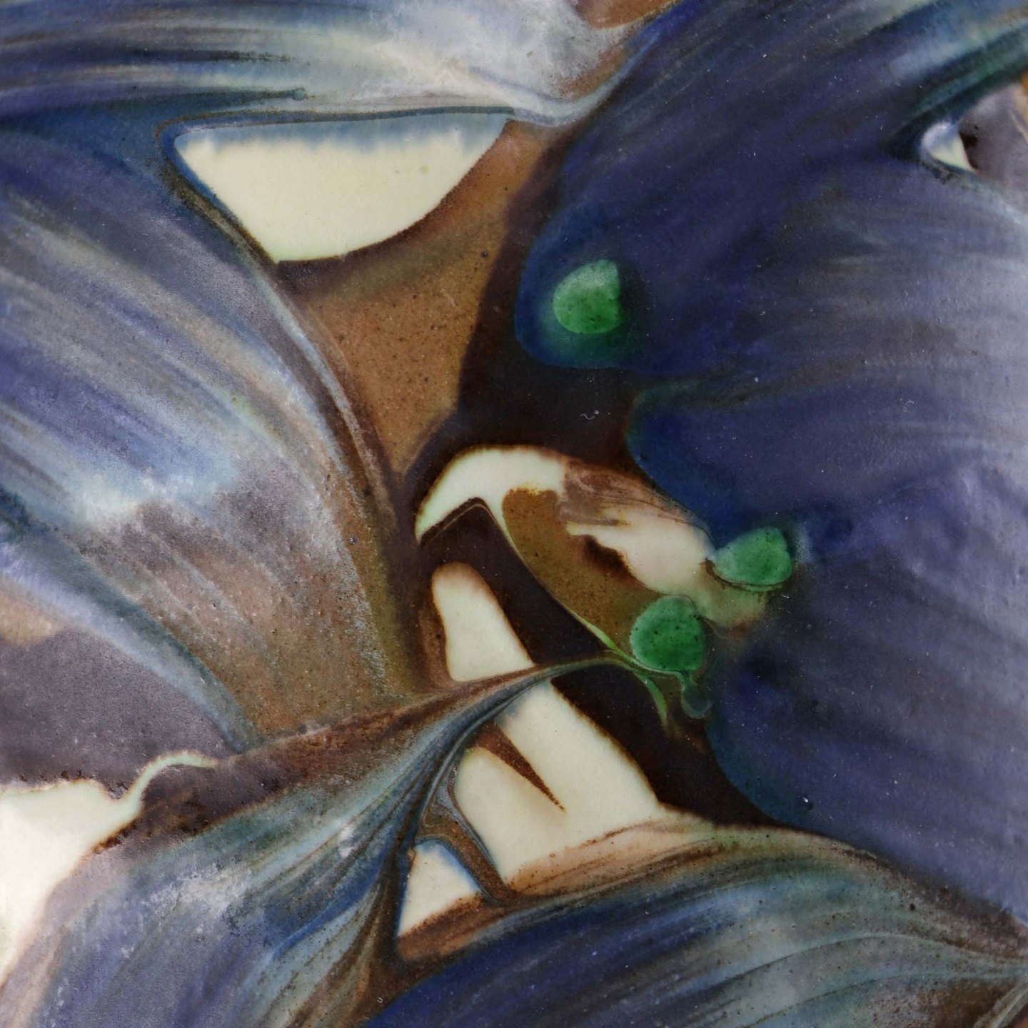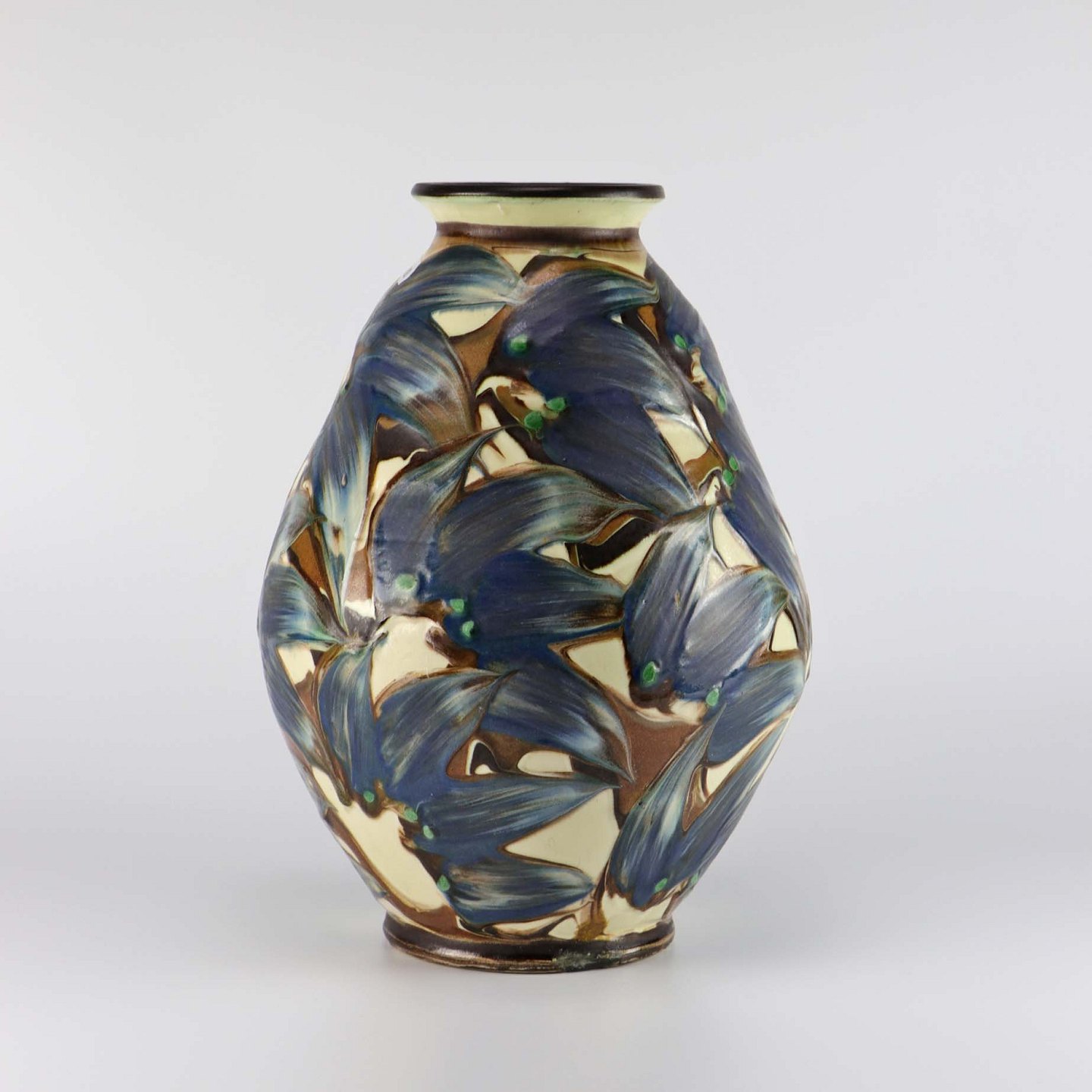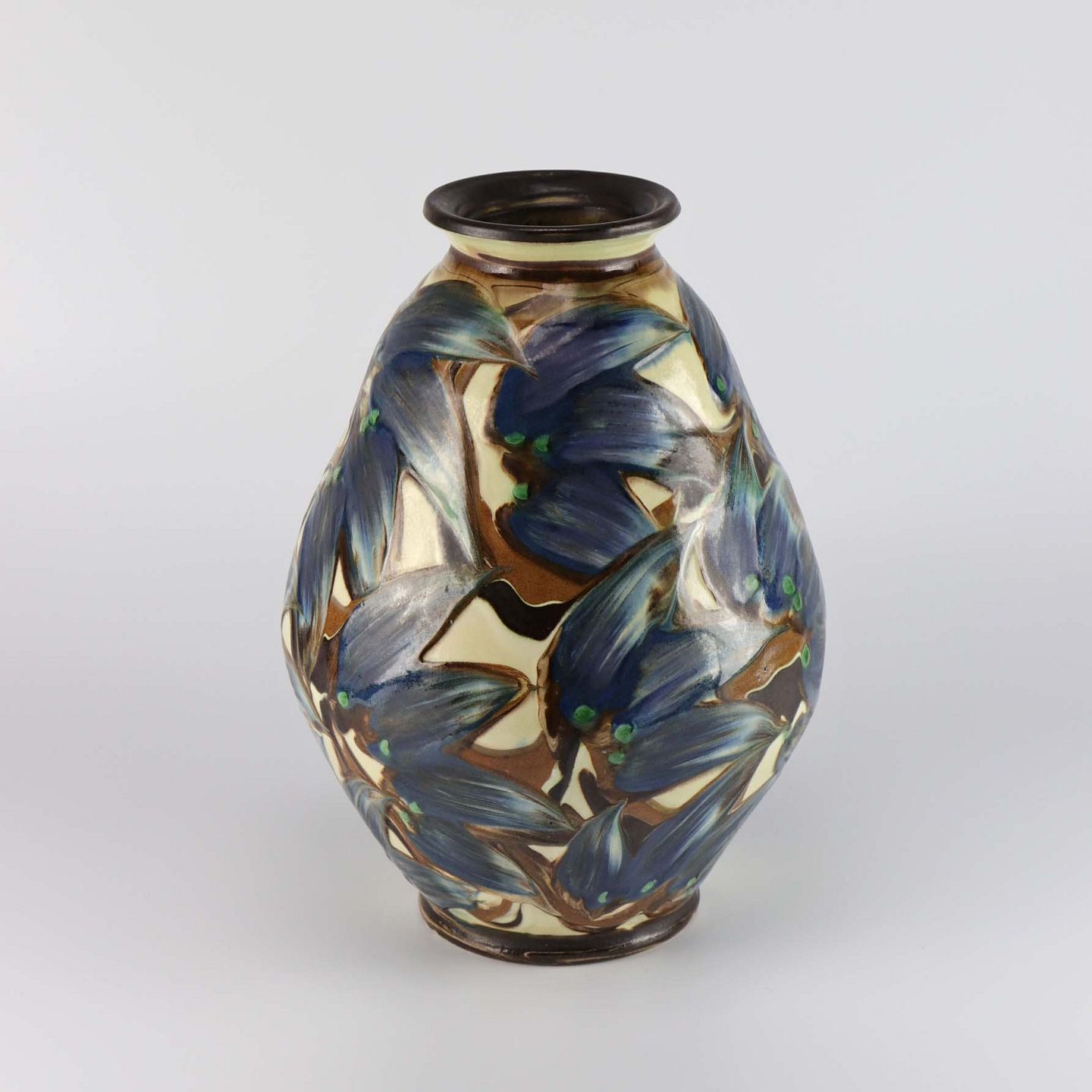 Vase af keramik med kohornsglasur i blå, brun og cremefarvet