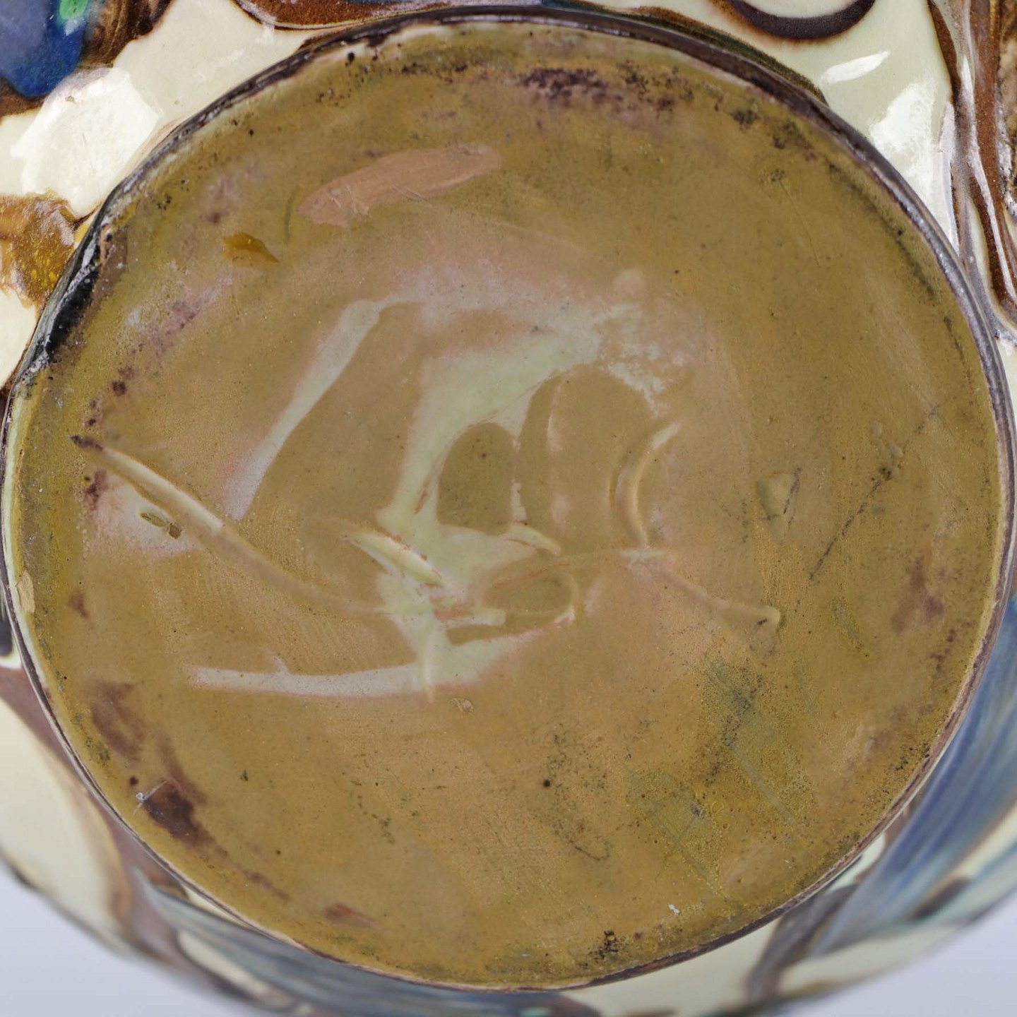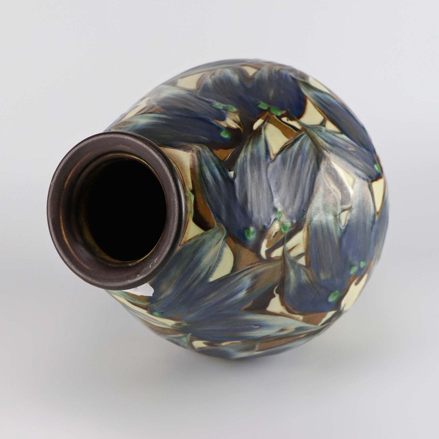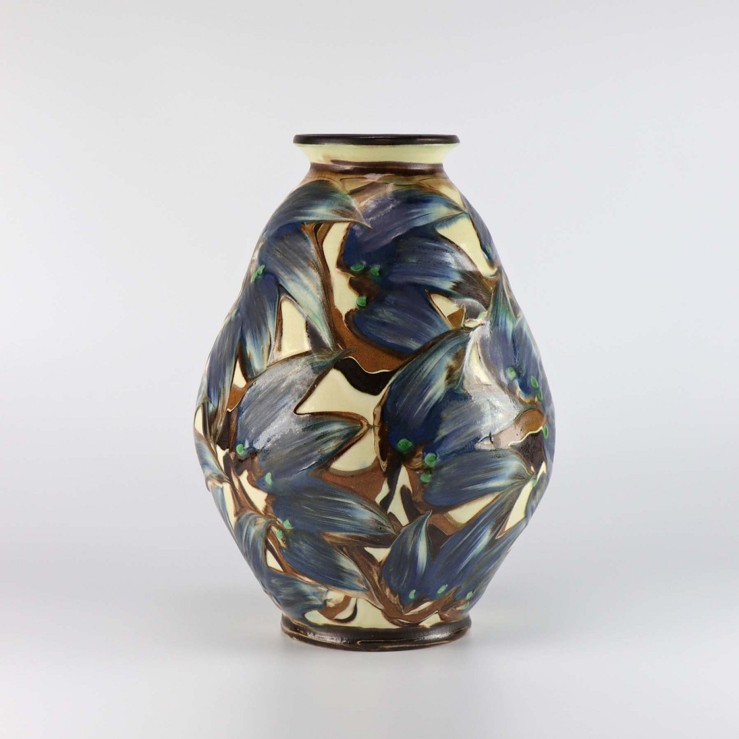 Vase af keramik med kohornsglasur i blå, brun og cremefarvet