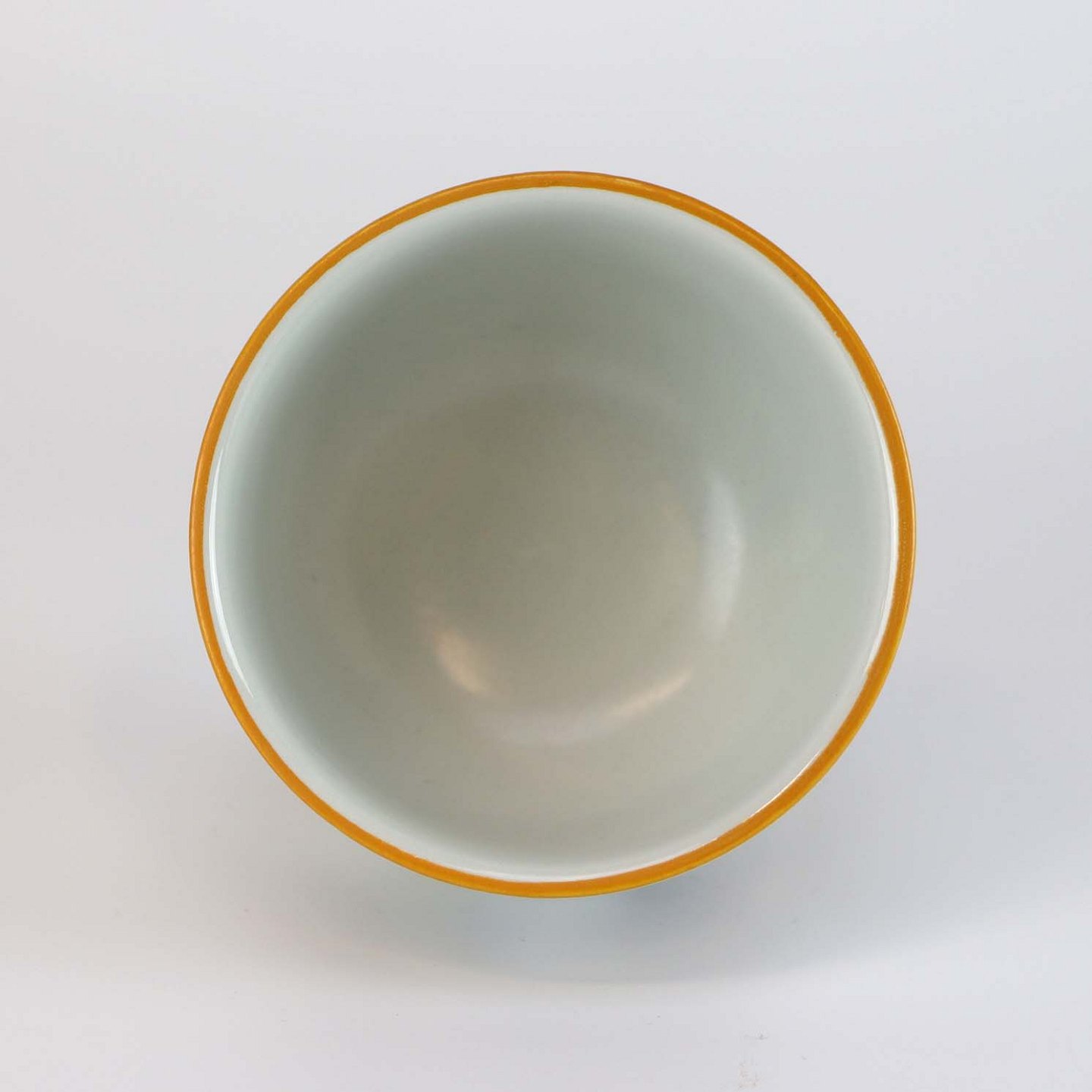 Urtepotteskjuler af fajance, glaseret med hvid og dekoreret med gyldne og brune nuancer. No 962/3759