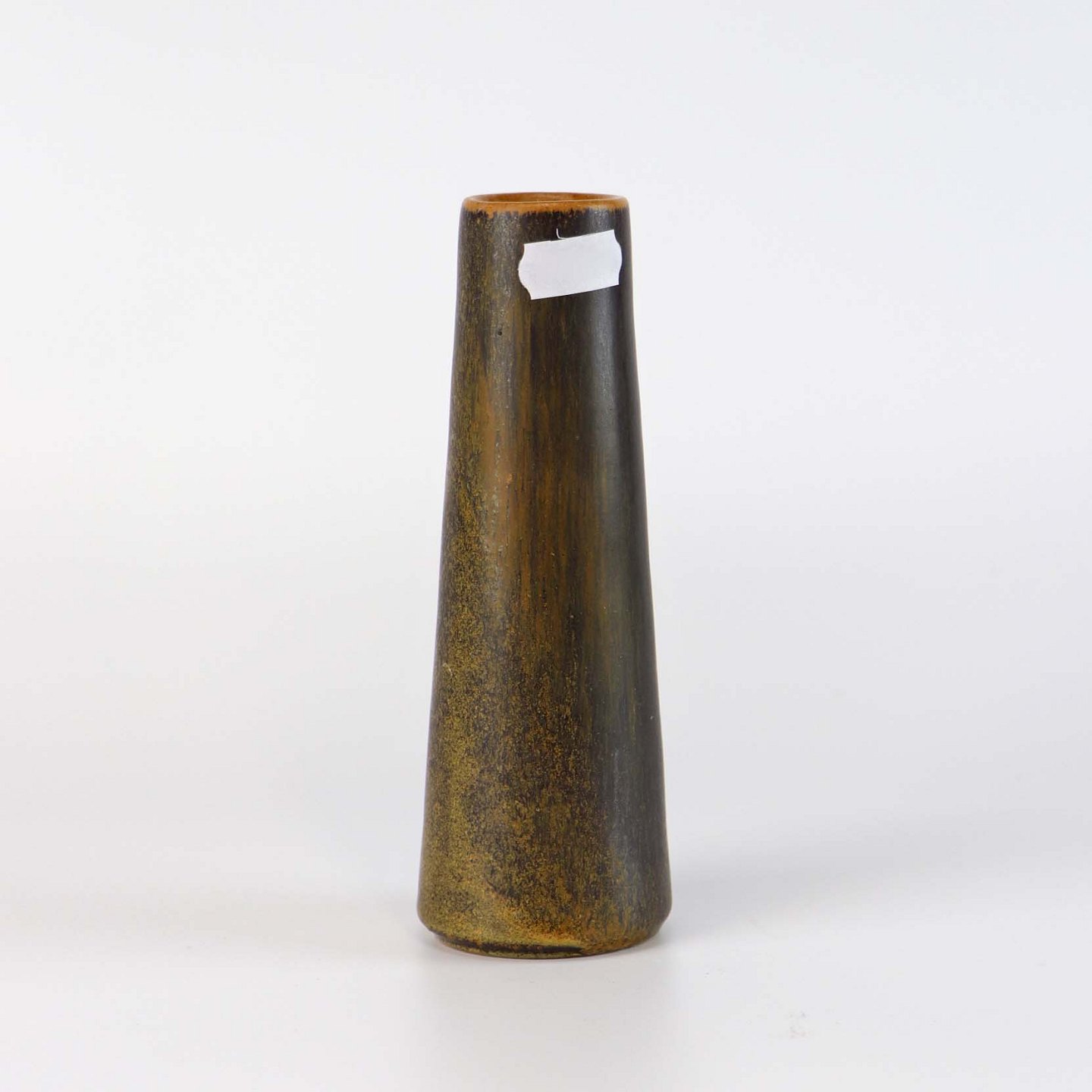 Mellemstørrelse slank vase af stentøj brun i grønbrune nuancer