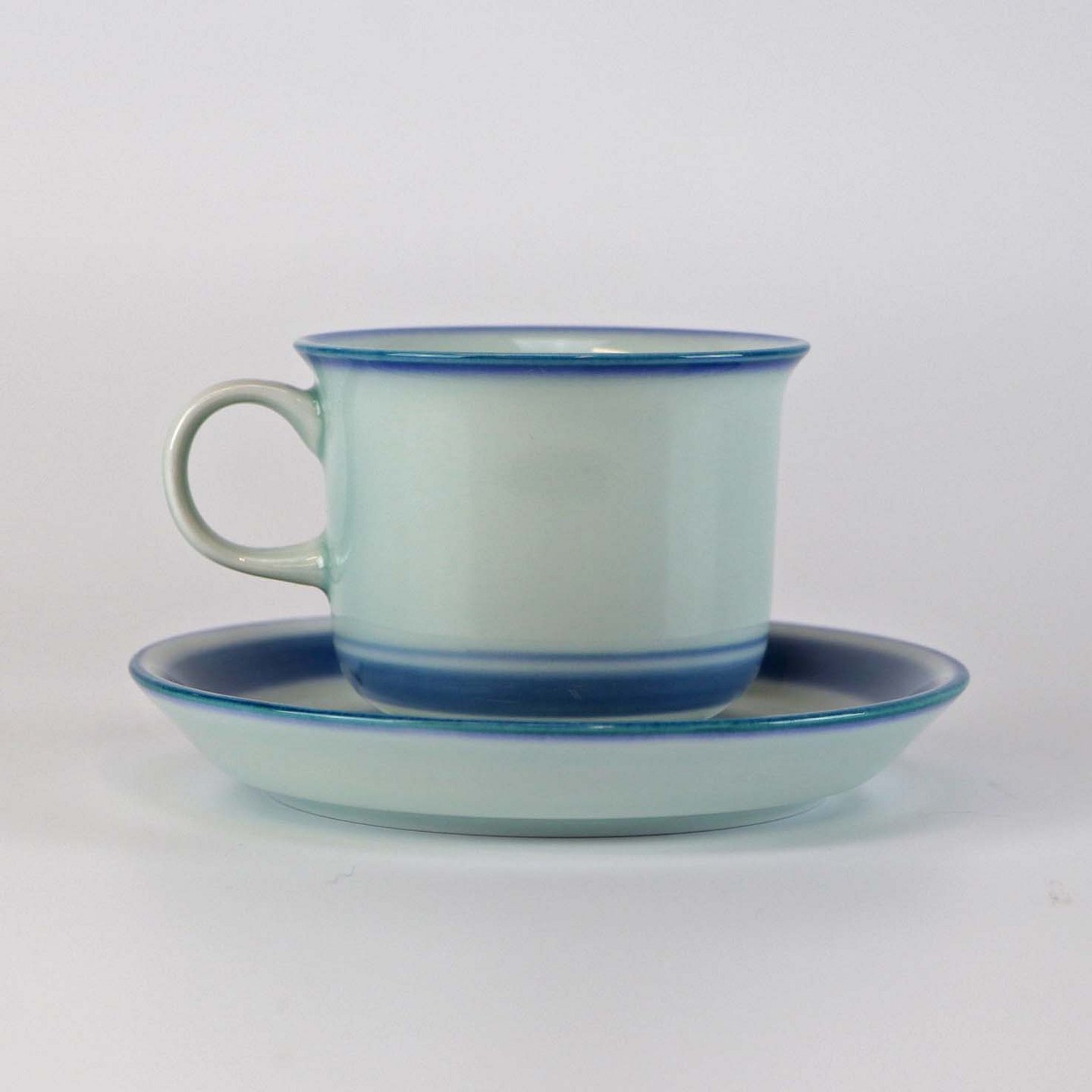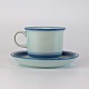 Stellets runde former er dækket med en silkeblød glasur og håndmalet med er lys almueblå farve lagt under glasuren. Stellet er ovnfast