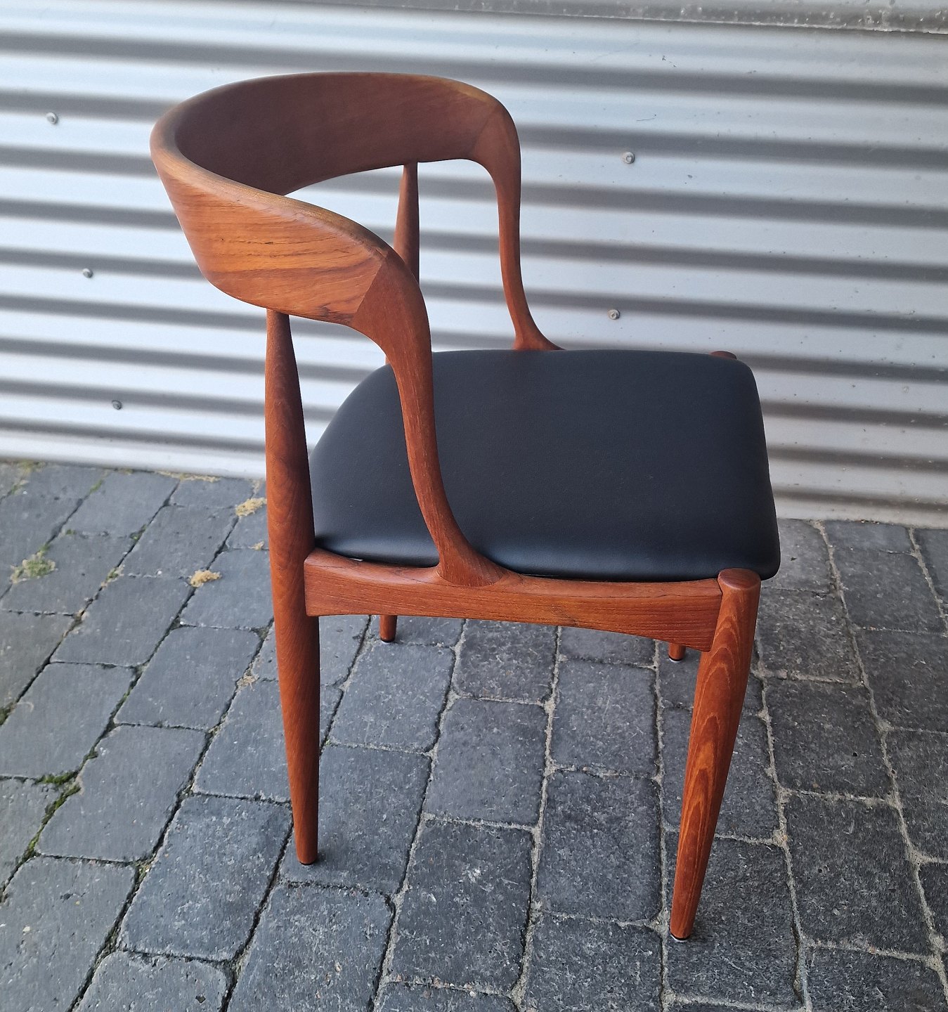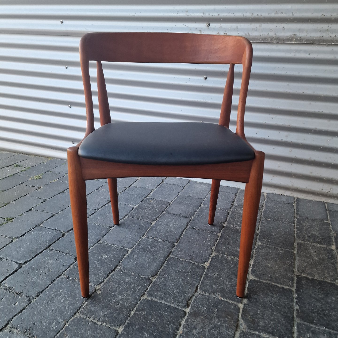4 stk nypolstrede spisebordsstole af teaktræ og sæde af læder.