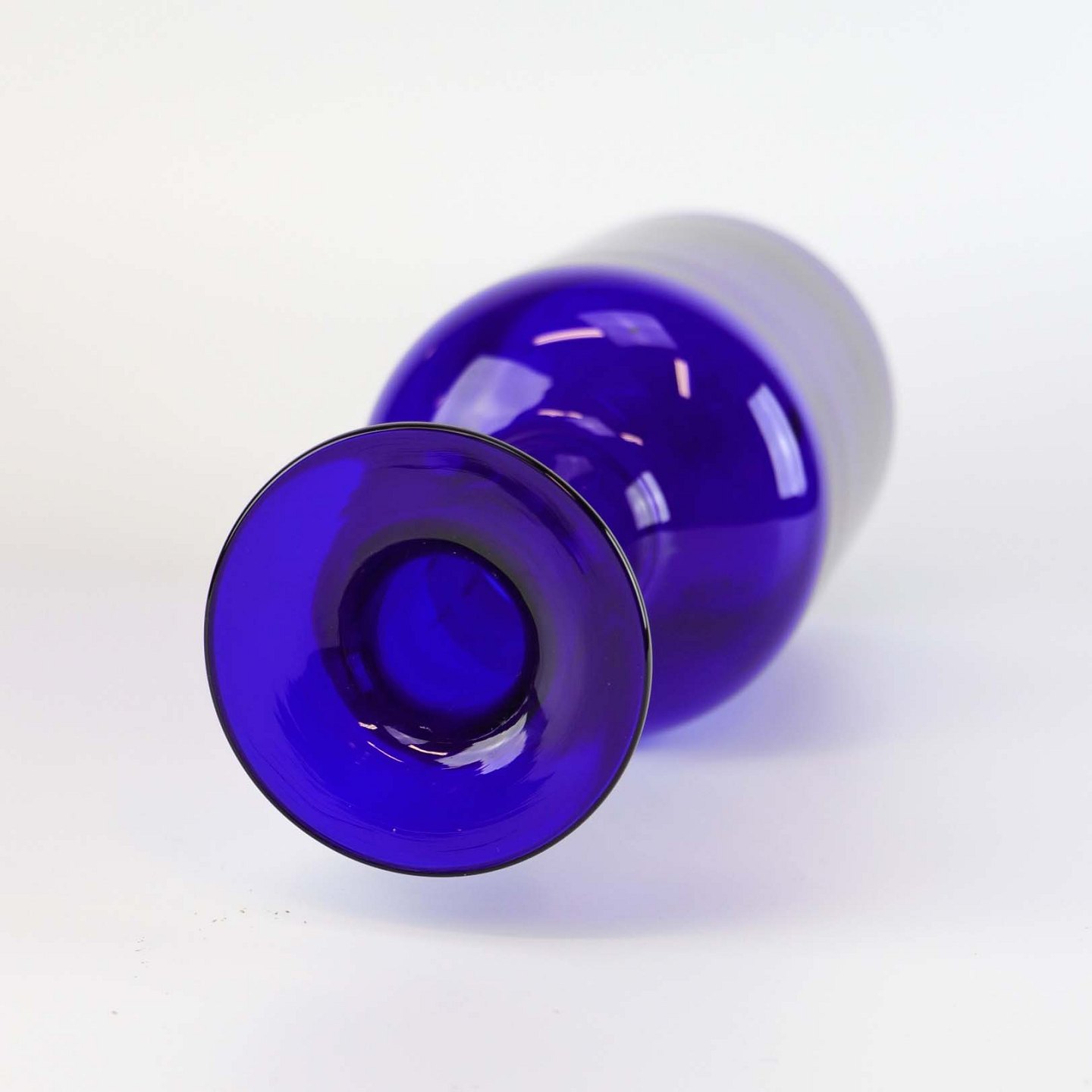 Vase af mundblæst klart blåt glas