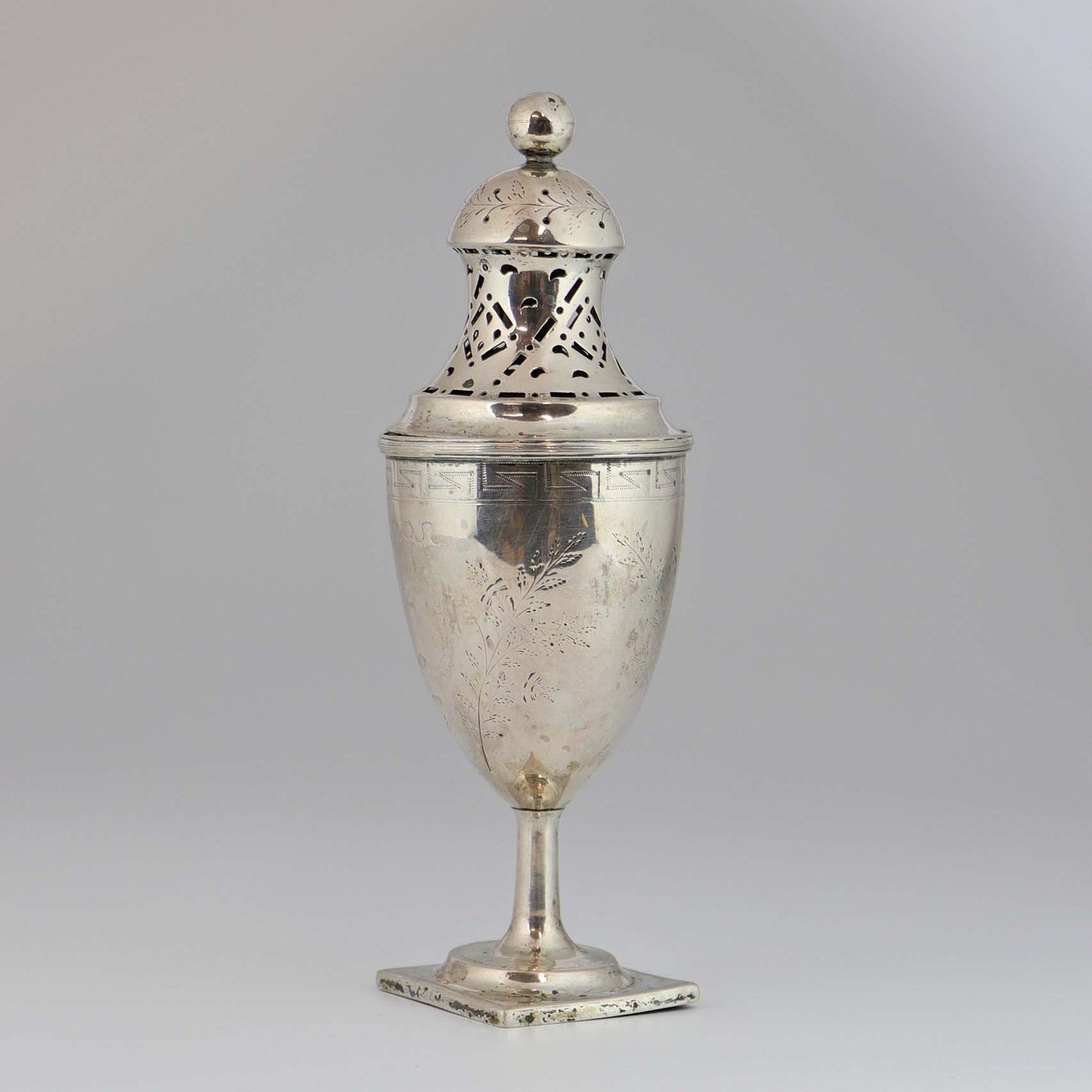 Sukkerstrø af tretårnet sølv med dekorationer