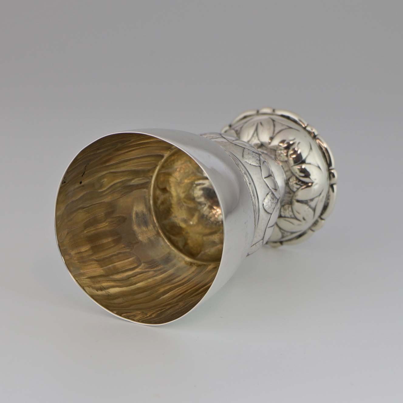 Drikkebæger på dekoreret fod af sølv