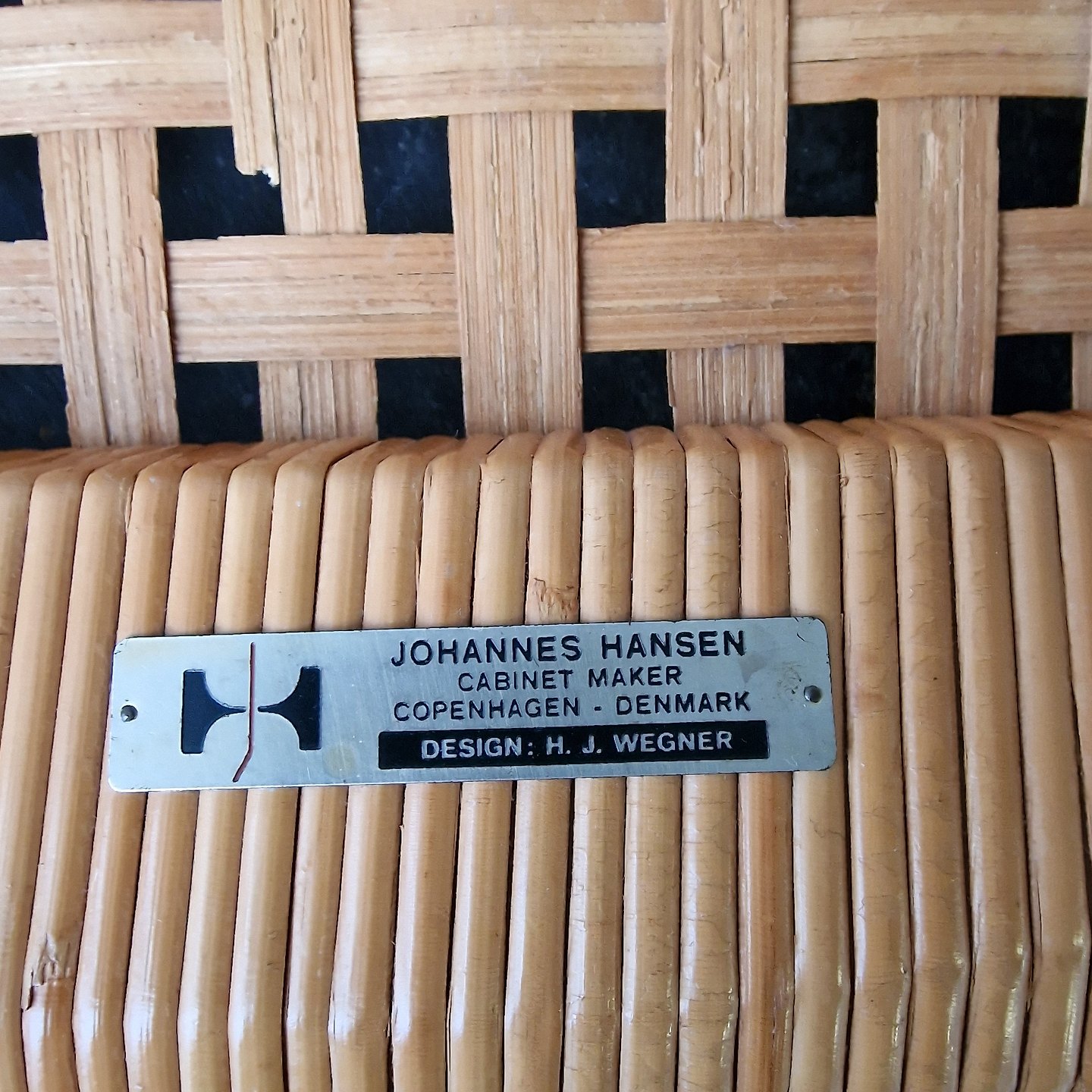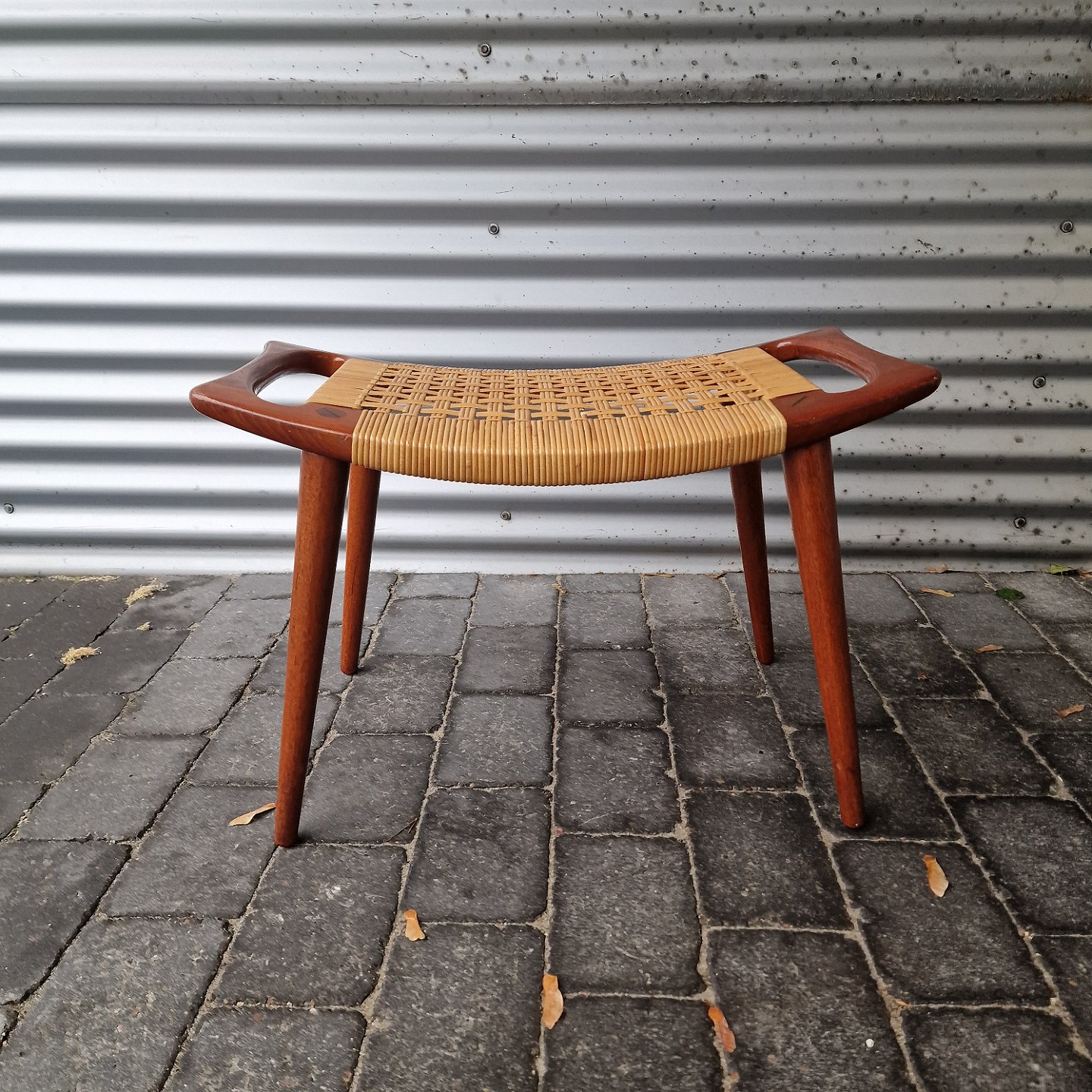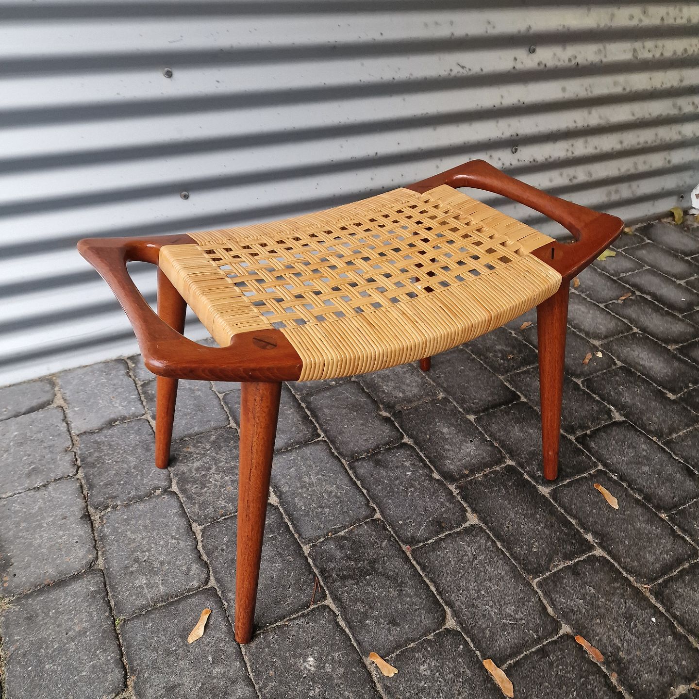 Wegner skammel. Stel af mørkt træ. Sæde med flet af peddigrør/Rathan. Der er 2 små fejl på flet, men fremstår originalt, med design mærke.