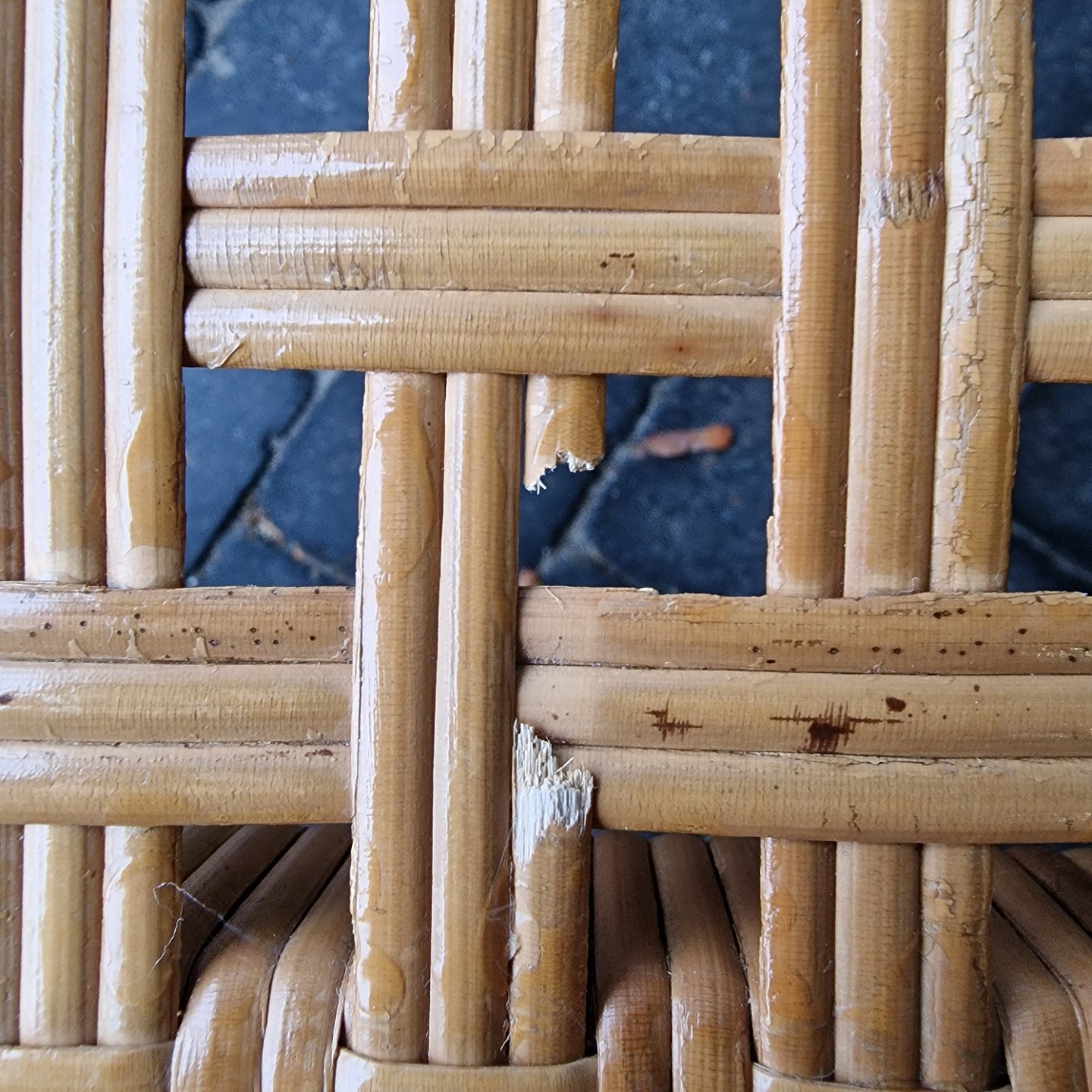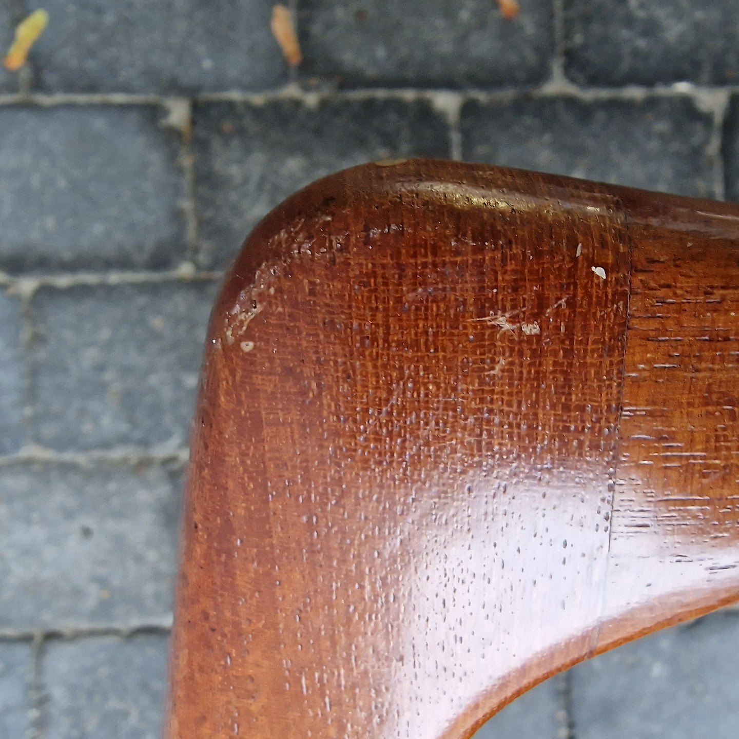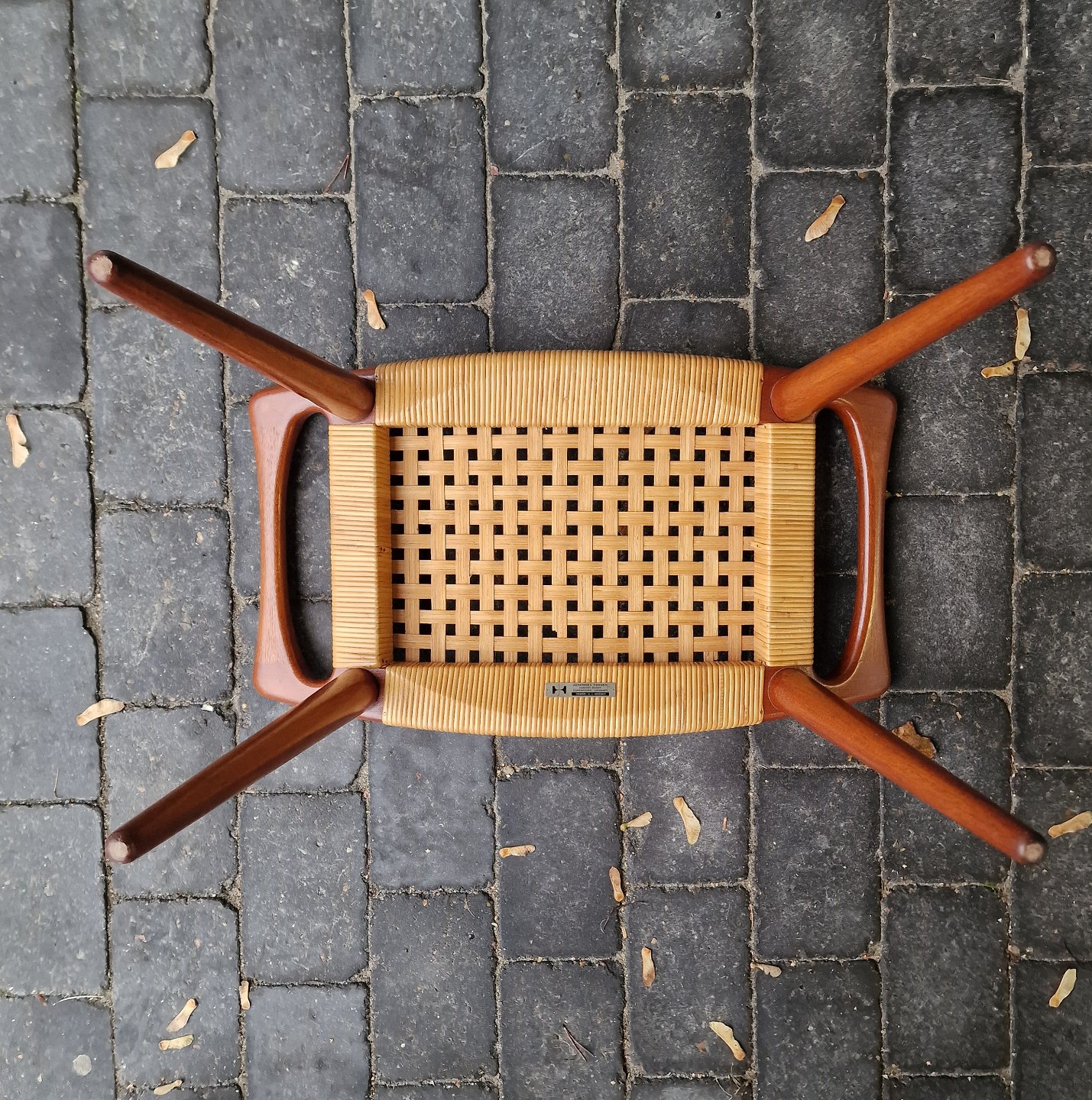 Wegner skammel. Stel af mørkt træ. Sæde med flet af peddigrør/Rathan. Der er 2 små fejl på flet, men fremstår originalt, med design mærke.