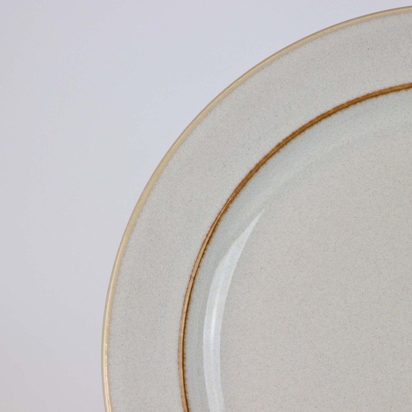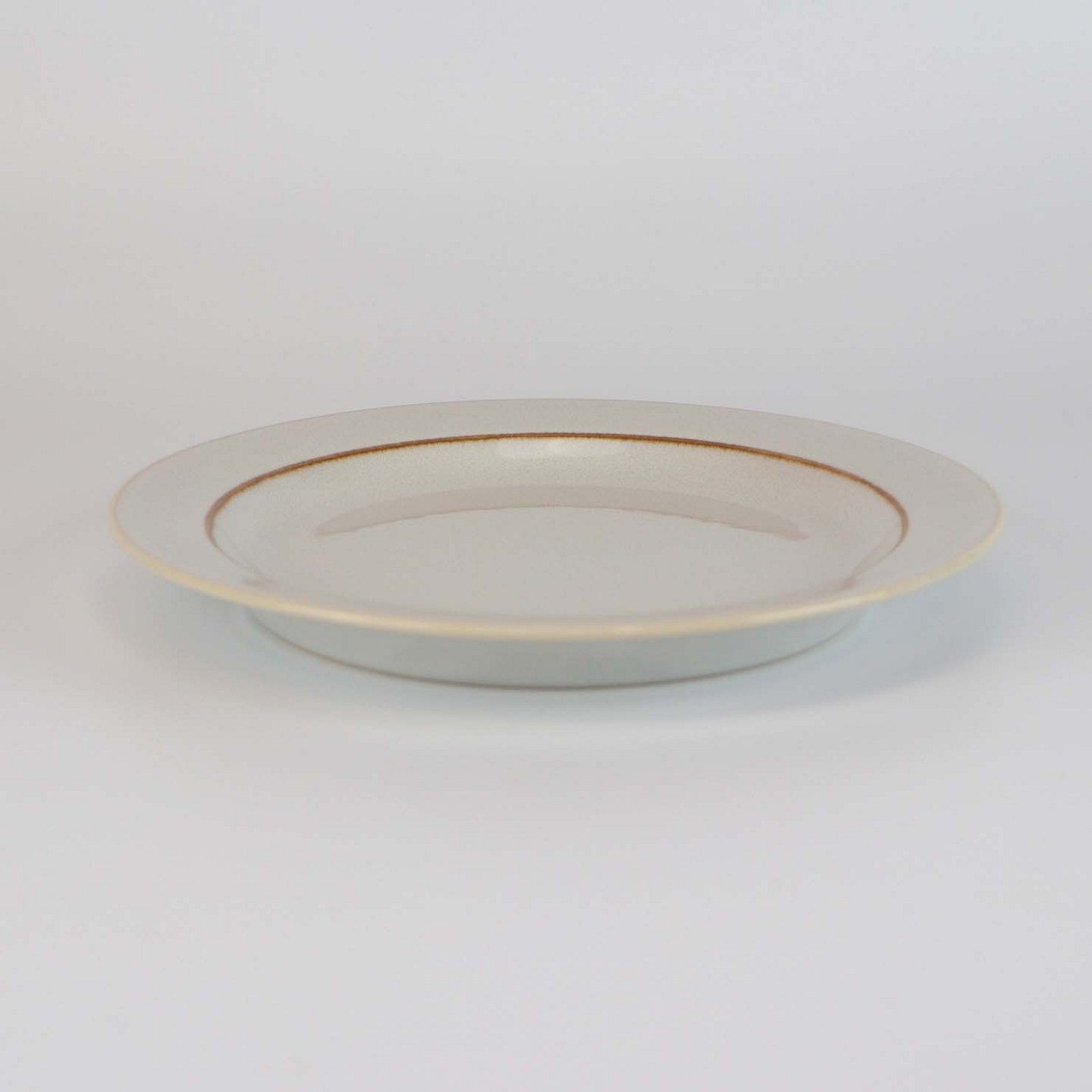 Stellet Coppelia er glaseret hvidt stentøj, dekoreret med kanter af lys brun farve