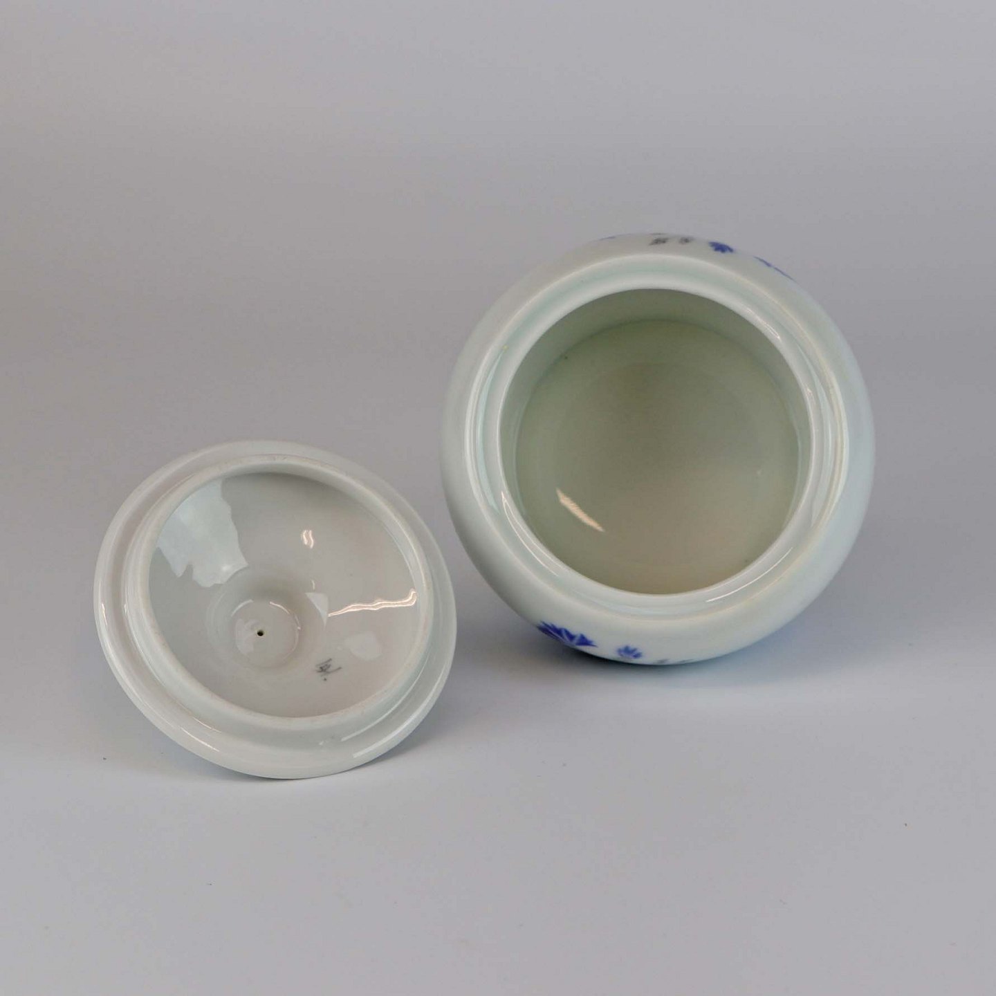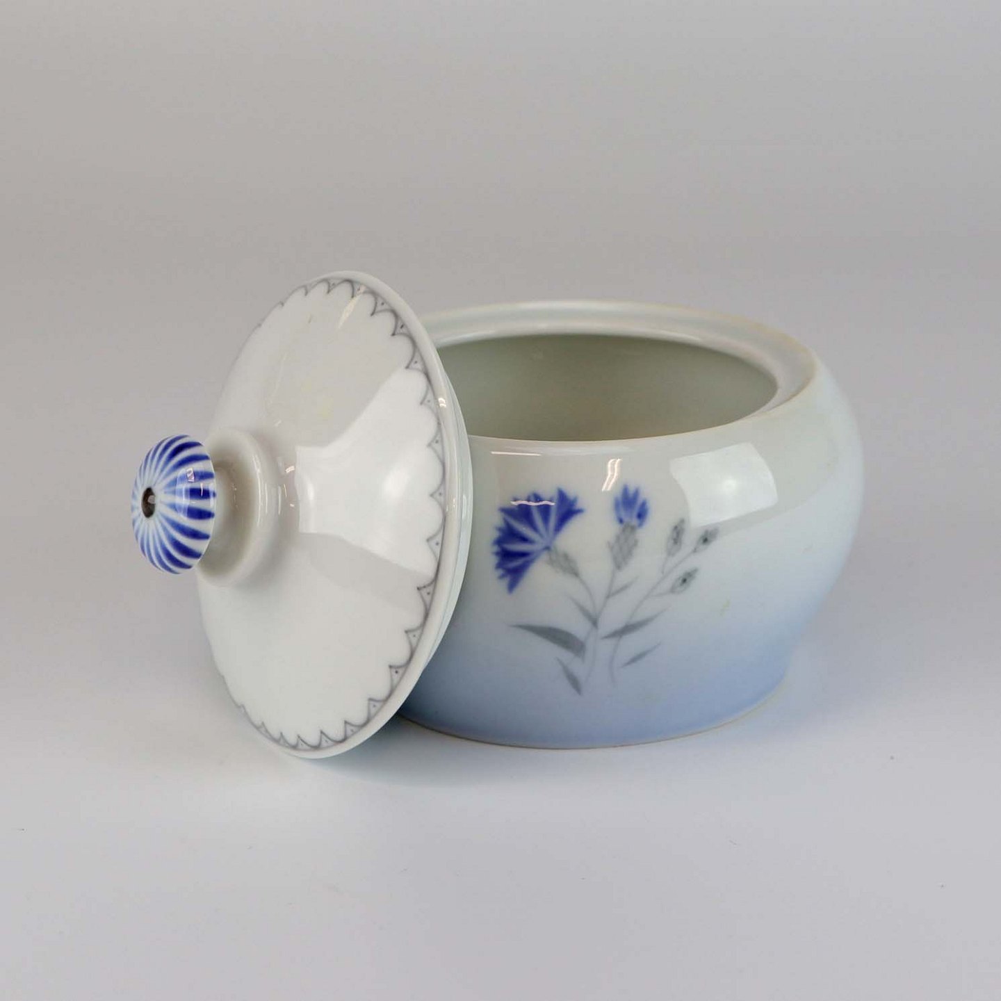 Demeter er af hvidt porcelæn med graduering af blå i kanten og med motiv af kornblomst