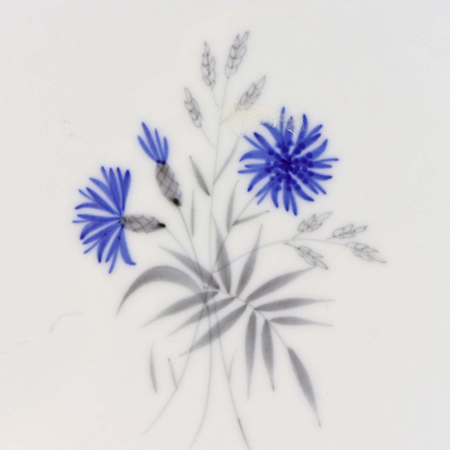 Demeter er af hvidt porcelæn med graduering af blå i kanten og med motiv af kornblomst