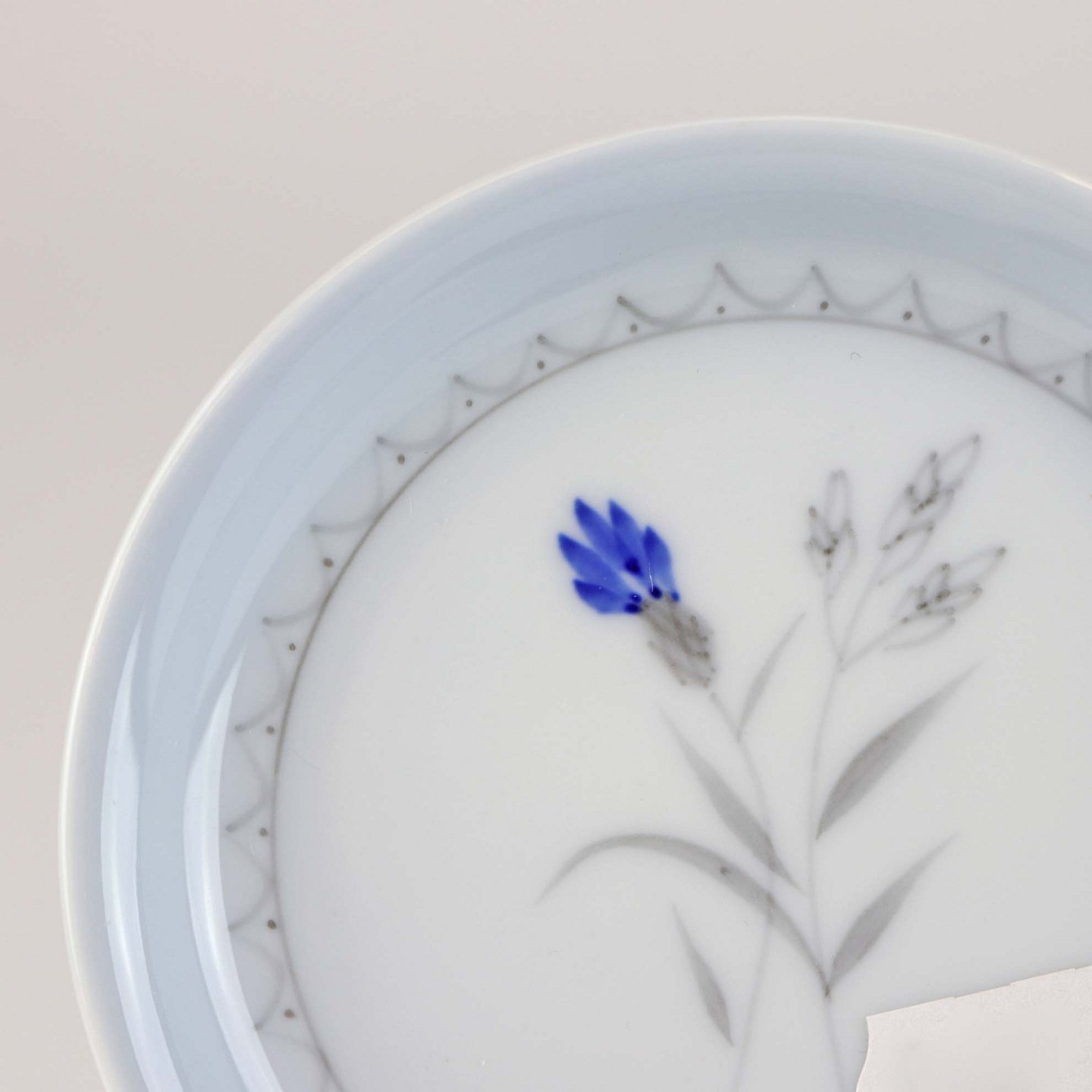 Demeter er af hvidt porcelæn med graduering af blå i kanten og med motiv af kornblomst