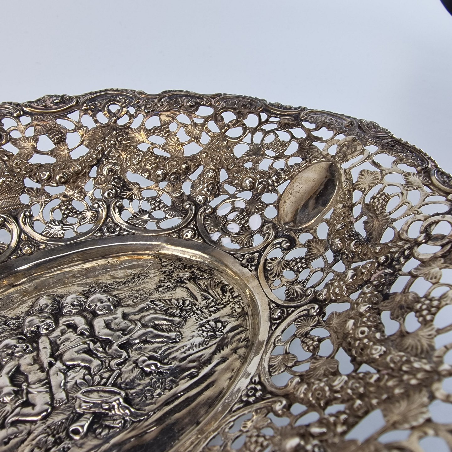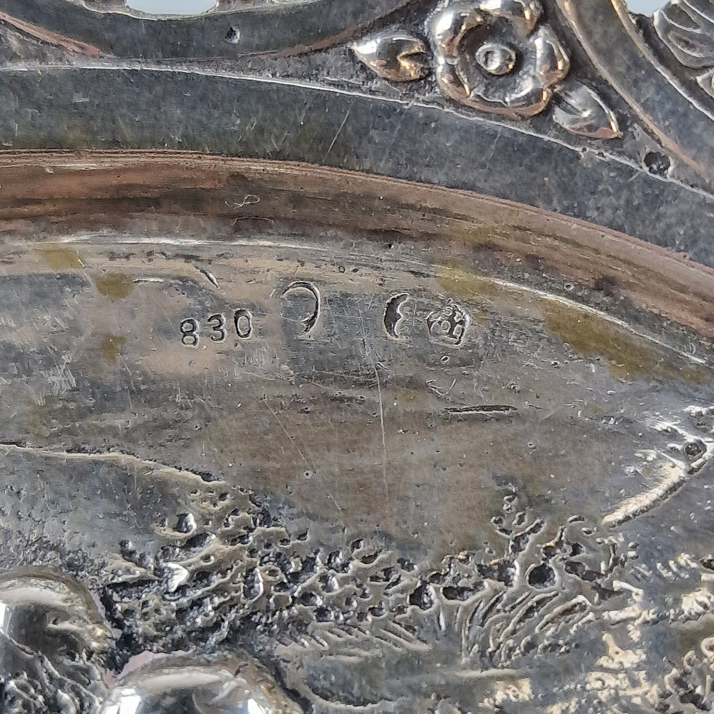 Sølvfad med motiv af blomsterranker og børn der leger på en eng