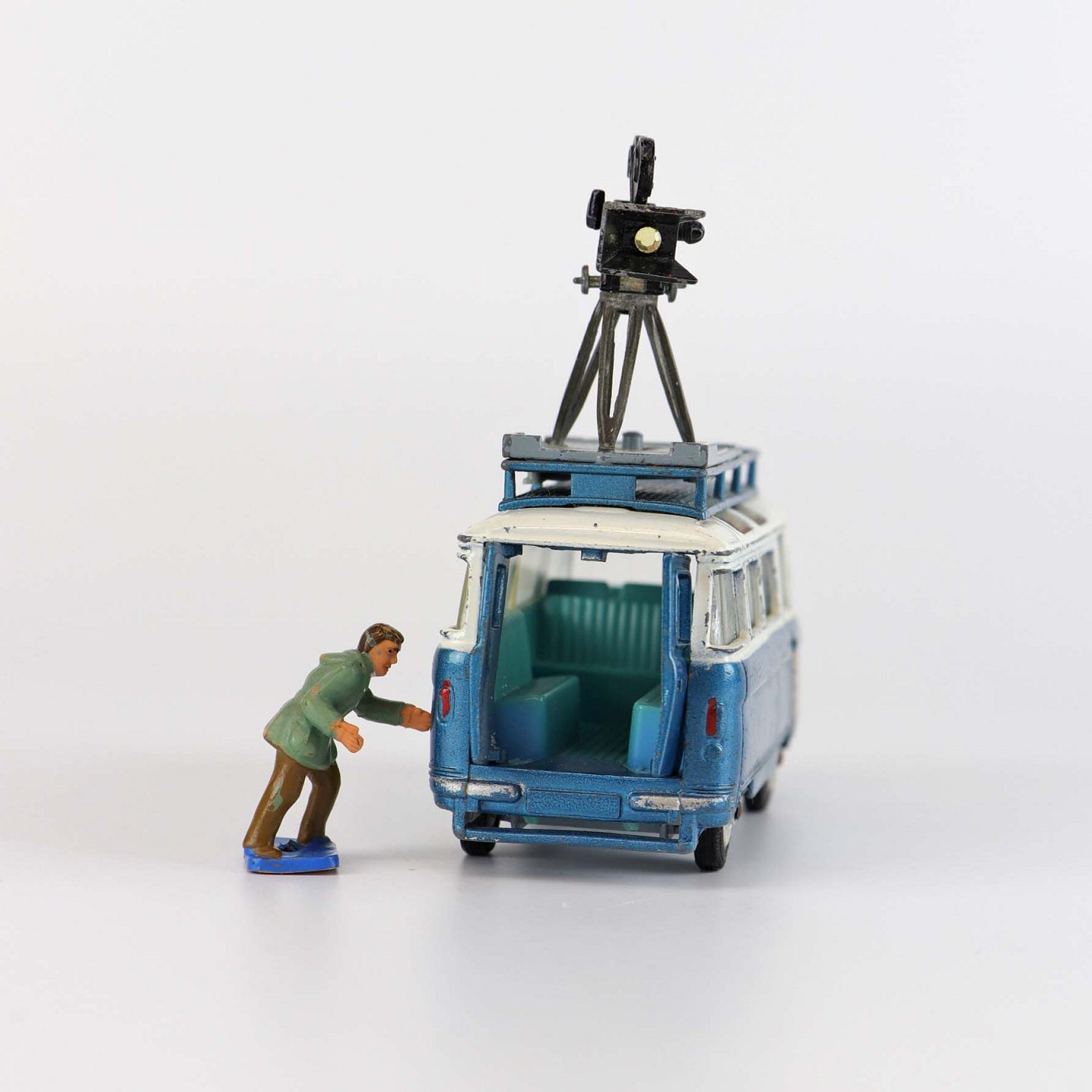 Filmfotograf og bus i metal. Figuren kan tages af.