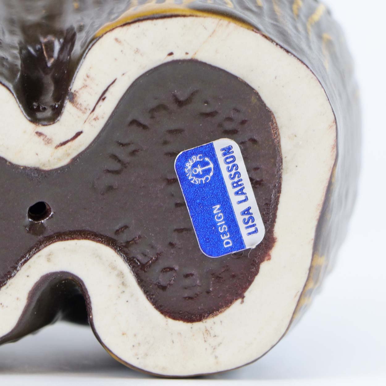 Figur i stentøj der forestiller en bjørn med beige, gule og brune striber fra serien Lillskansen (Zoo i Sverige)
