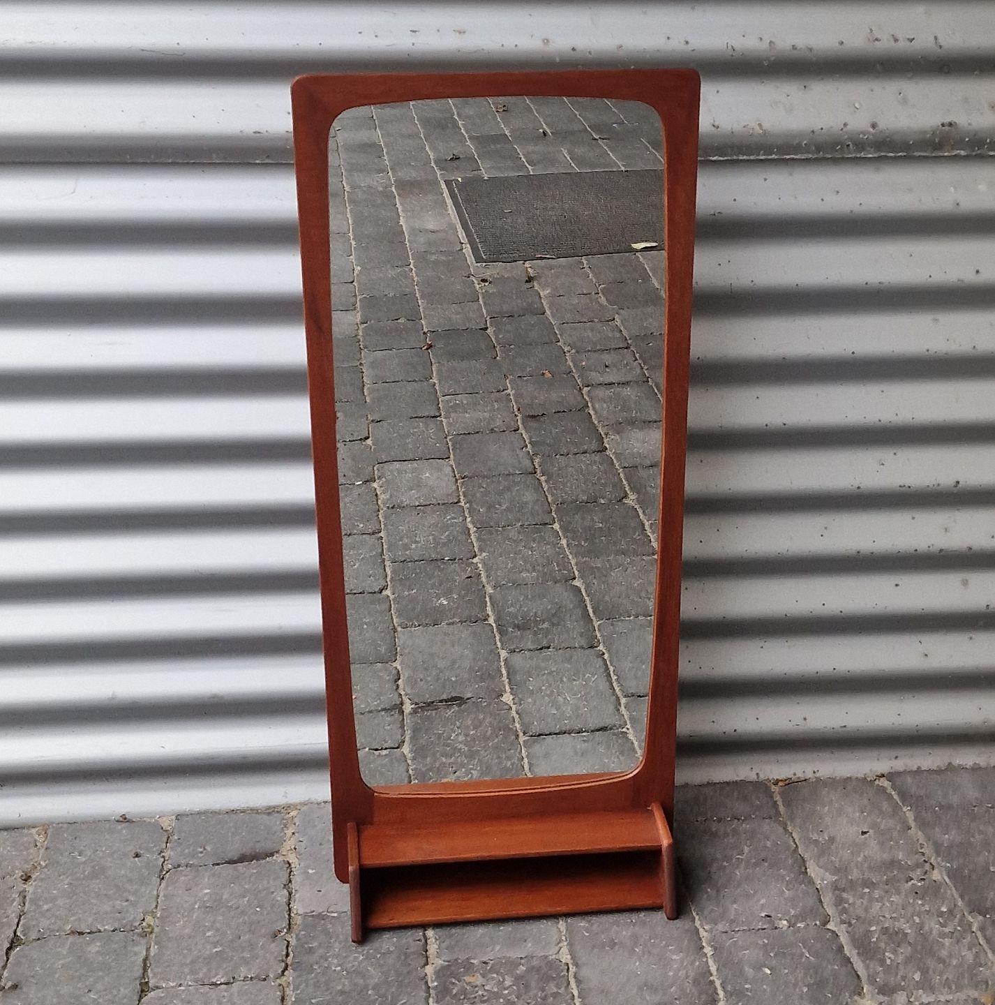 Smalt entrespejl med ramme og hylde i teaktræ i ukendt design