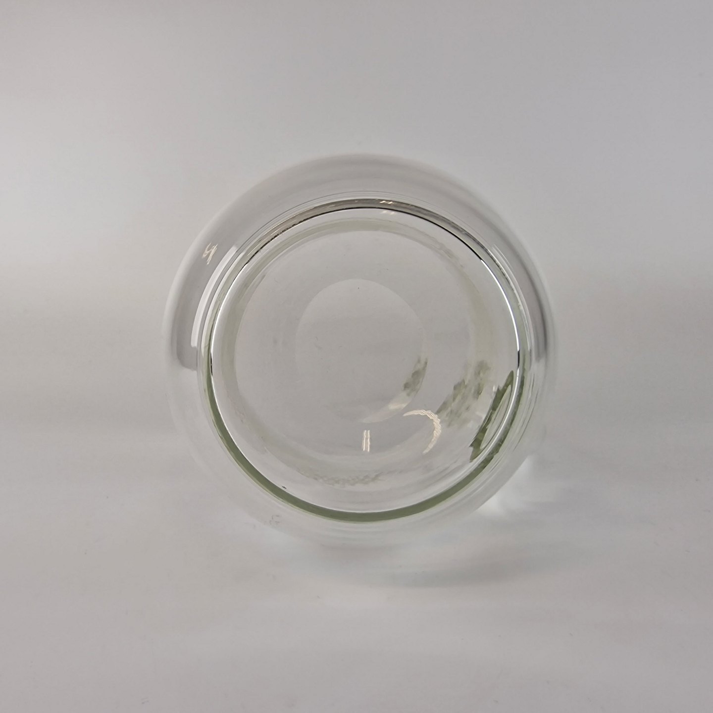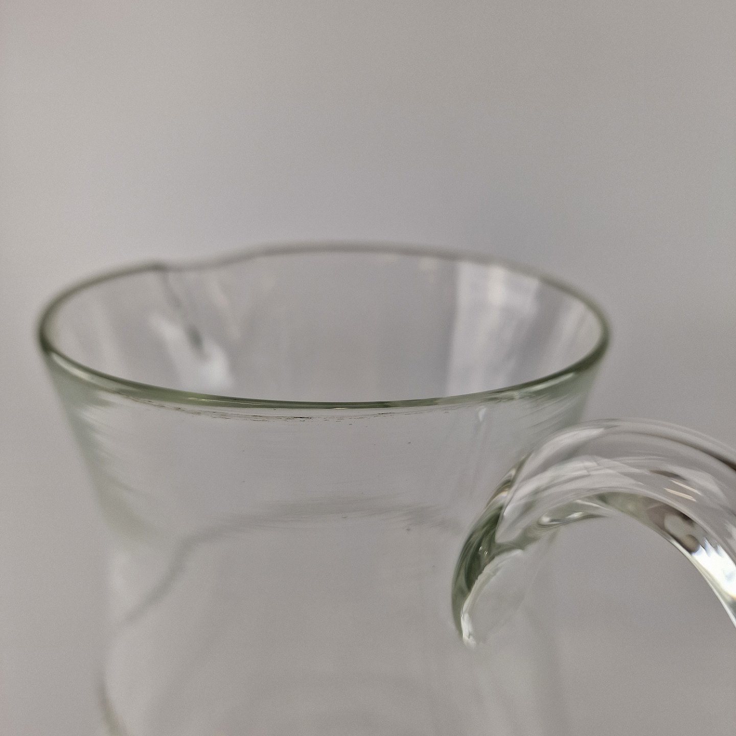 Mundblæst glaskande med krydsslibninger. Tilhørende glasstellet krydslebne med baluster stilk