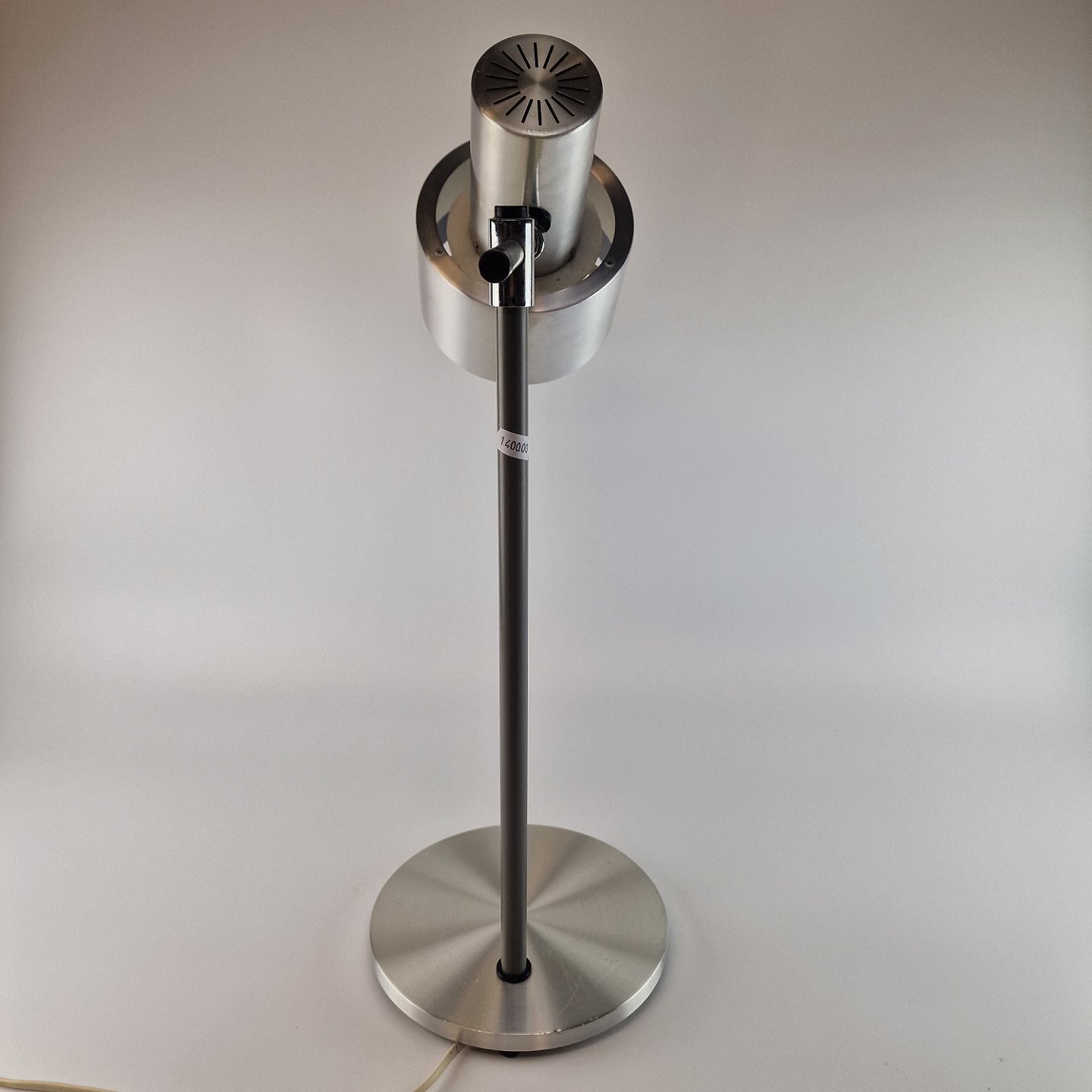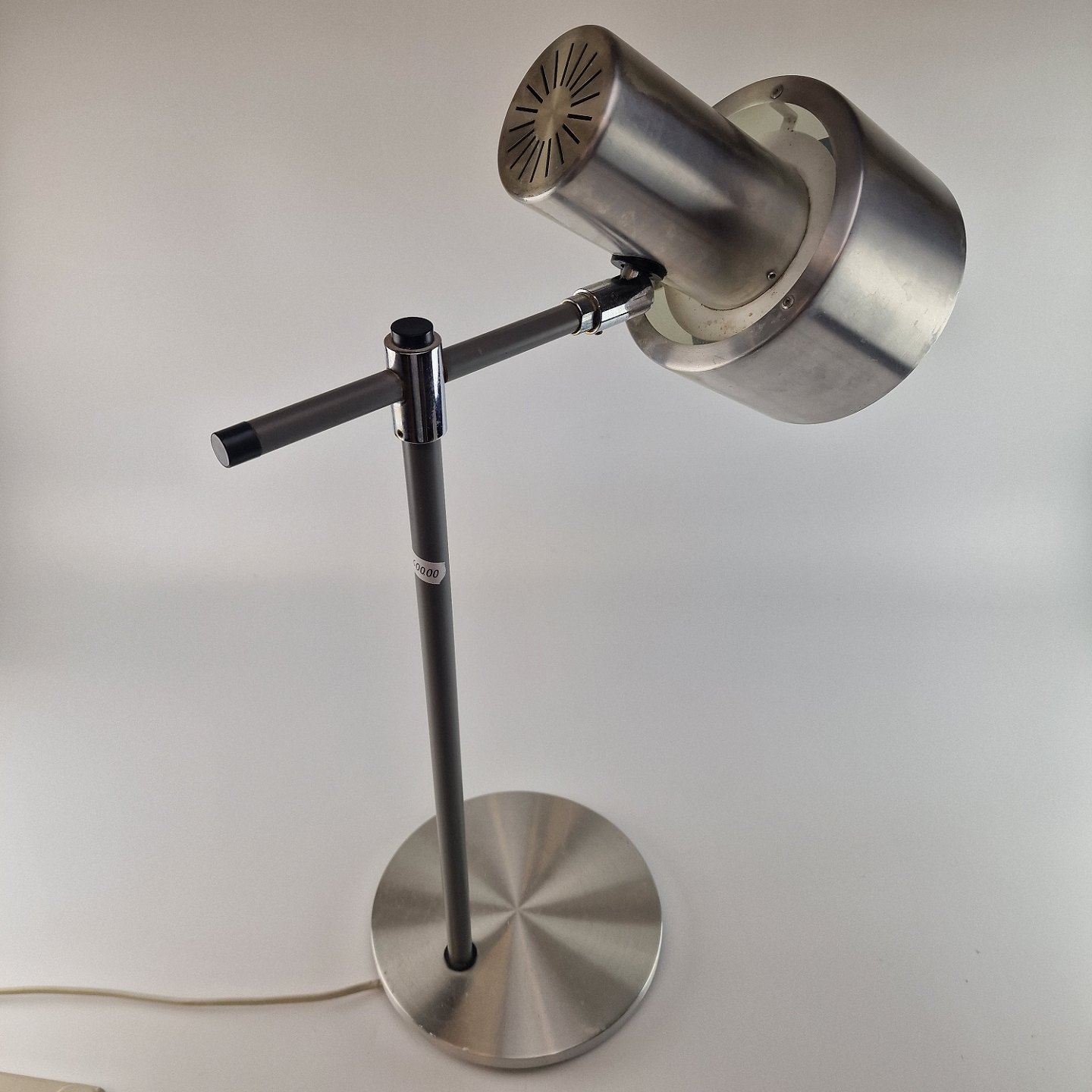 Bordlampe i grålakeret og børstet stål. Justerbar skærm og i bredden