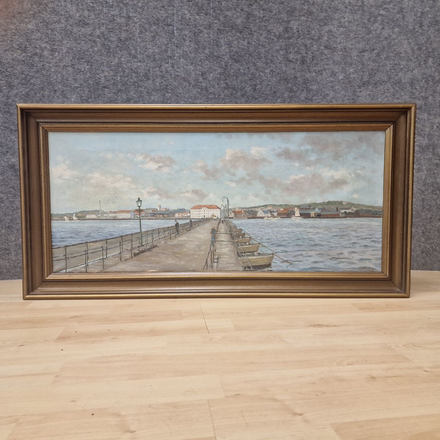Maleri af protonbroen over Limfjorden med Hotel Royal på Aalborg siden
