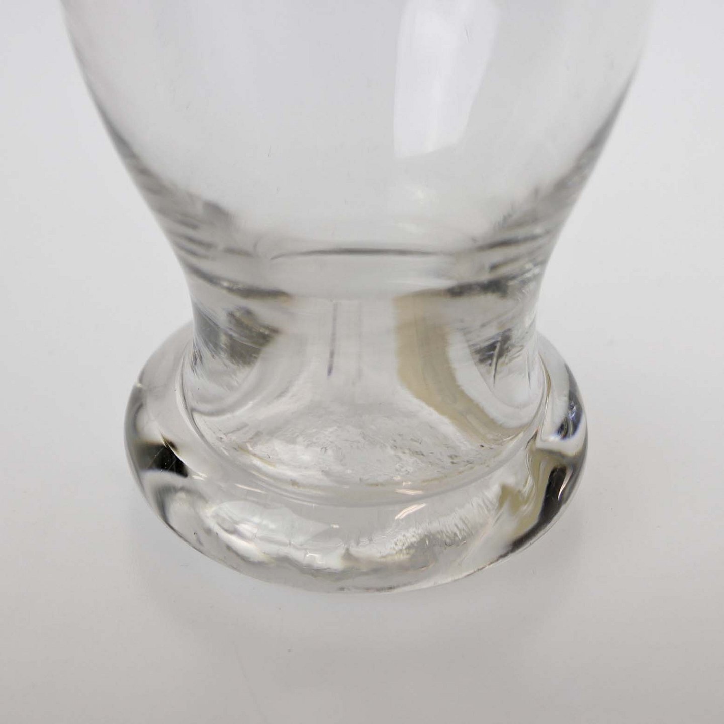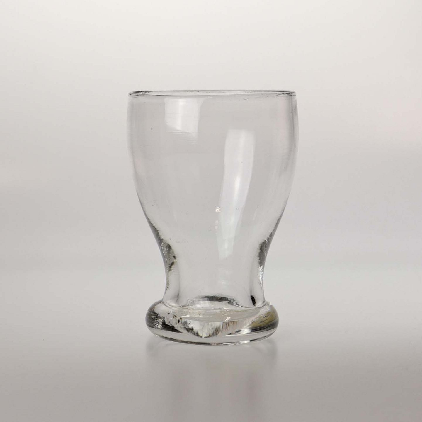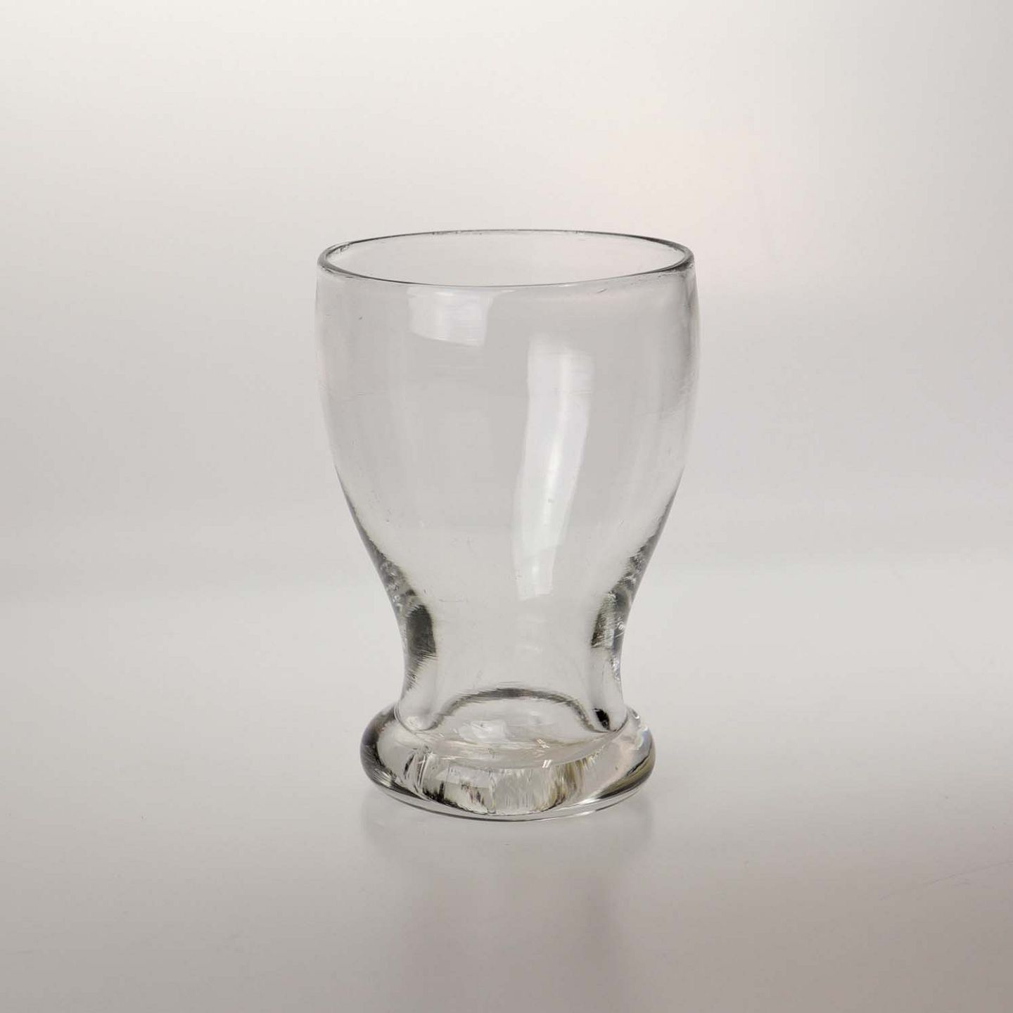 Tøndeformet glas med tyk fod.