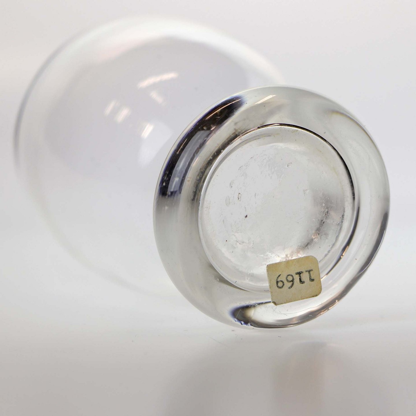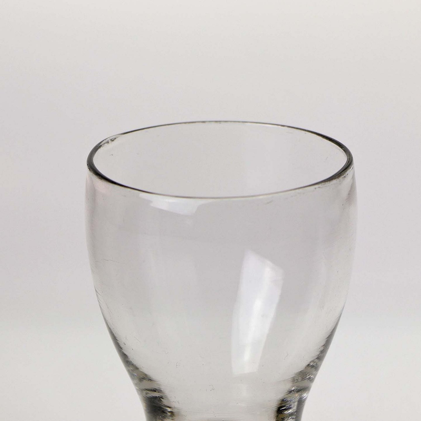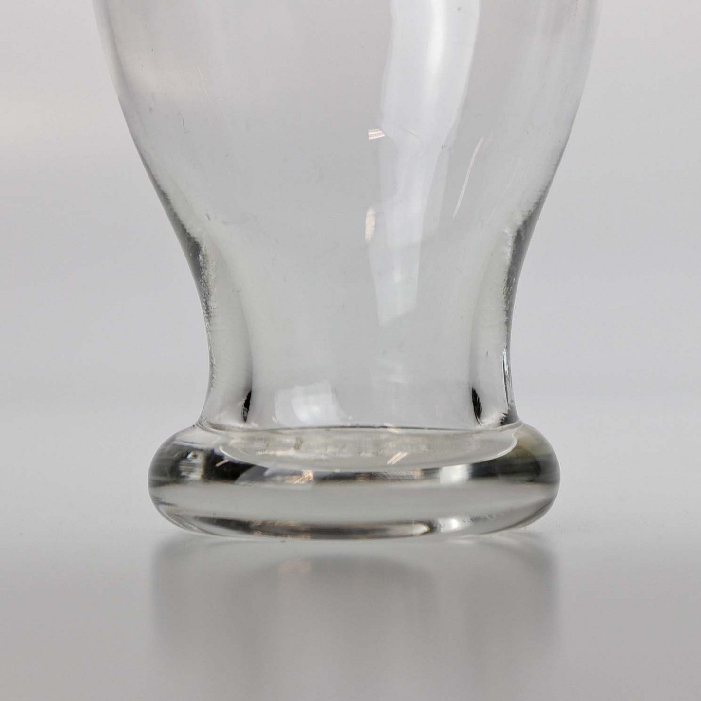 Tøndeformet glas med tyk fod.