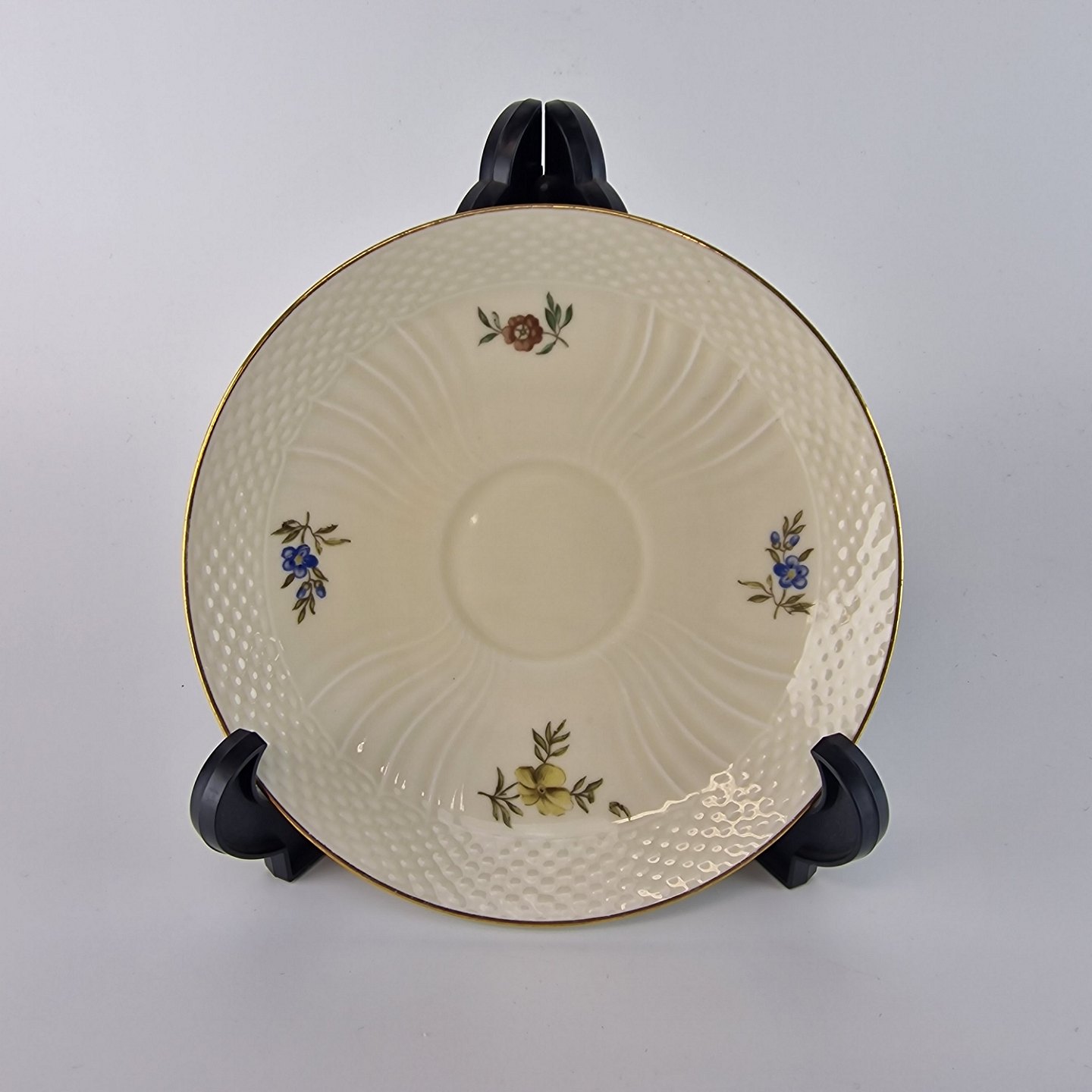 Frijsenborg har cremefarvet glasur og mangefarvede rokoko blomsterdekorationer, samt guldkant. Dette kaffe og spisestel er opkaldt efter den kendte herregård Frijsenborg ved Hammel som stammer fra 1672.