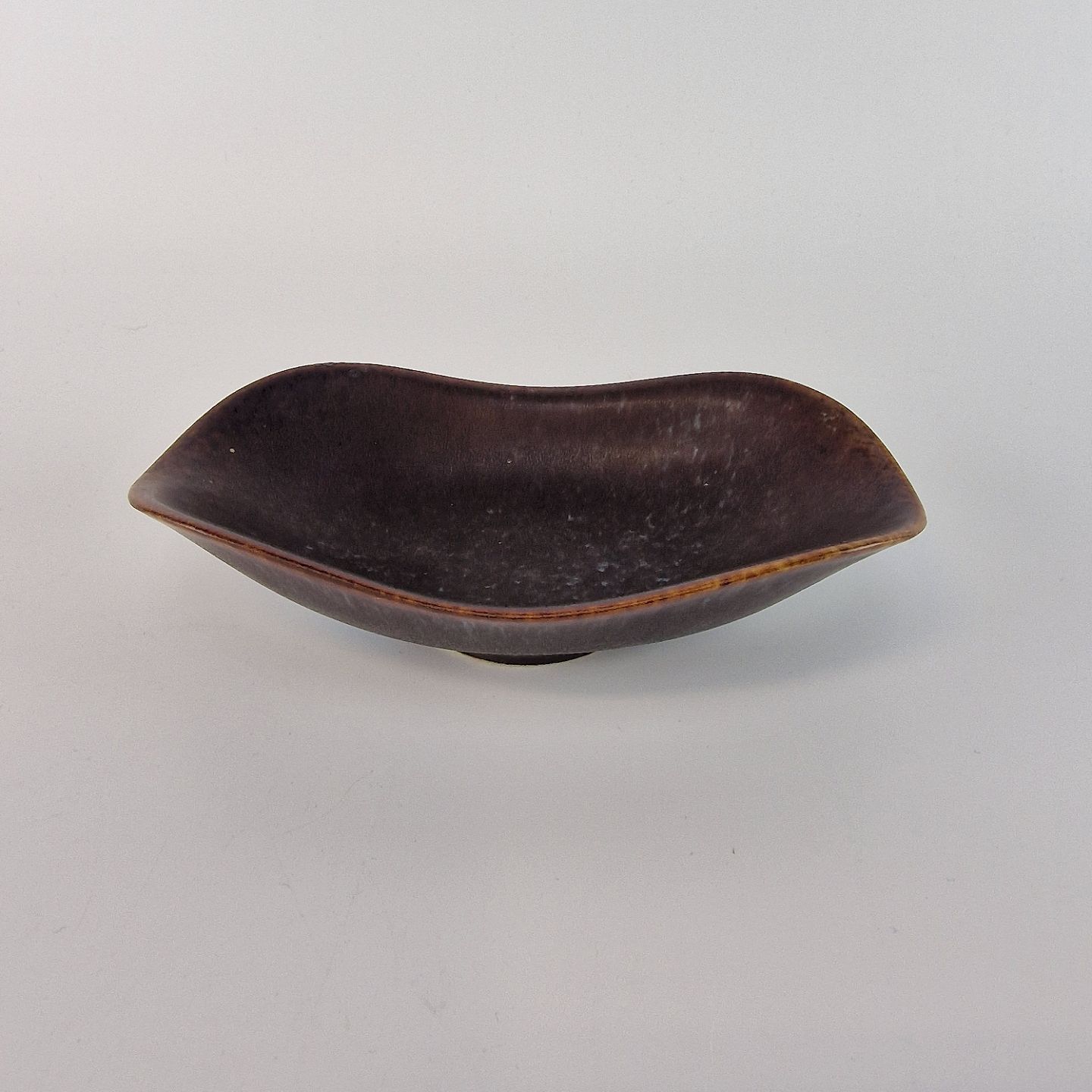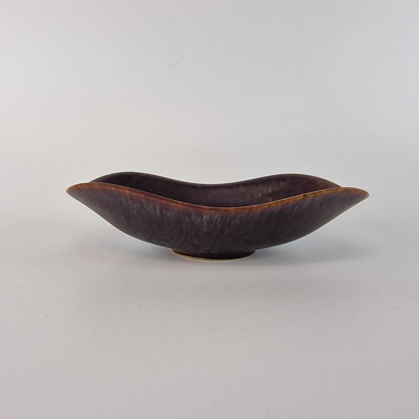 Brunlig glaseret skål med bølgende kant. Model ARF