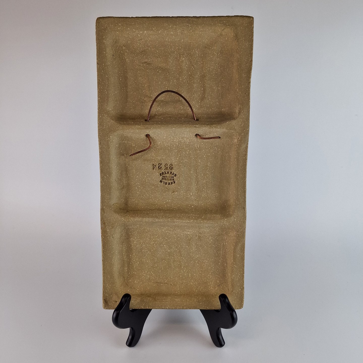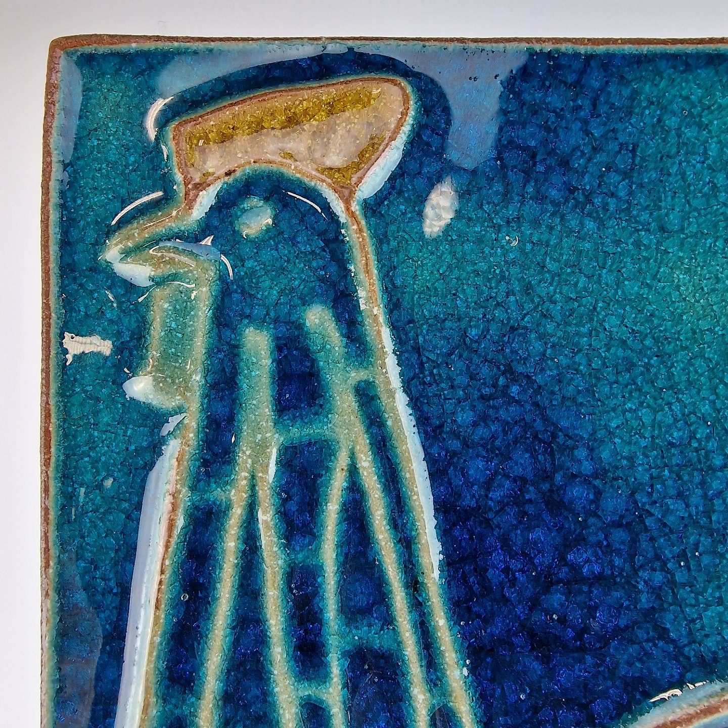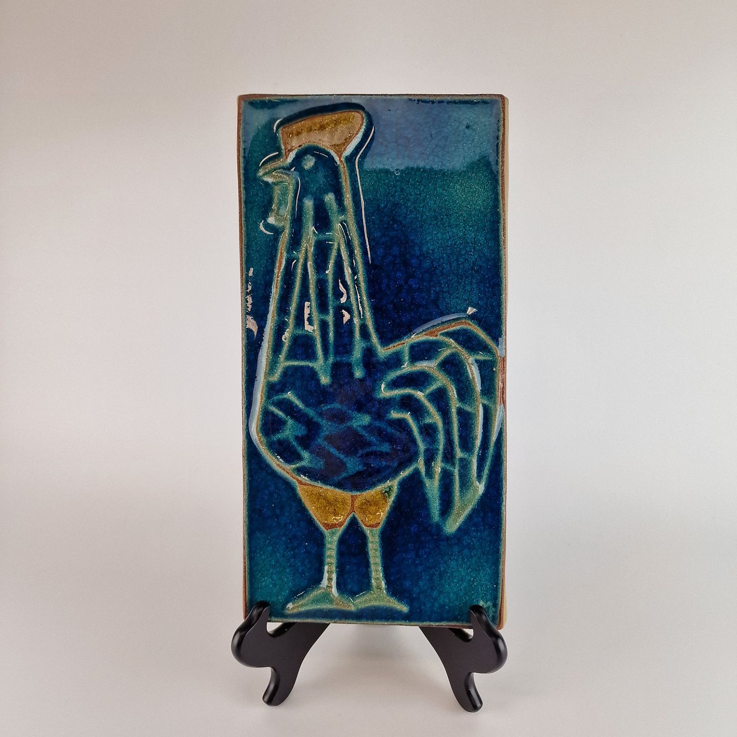 Stentøjs relief i blå og grønne nuancer med hane. No 3524
