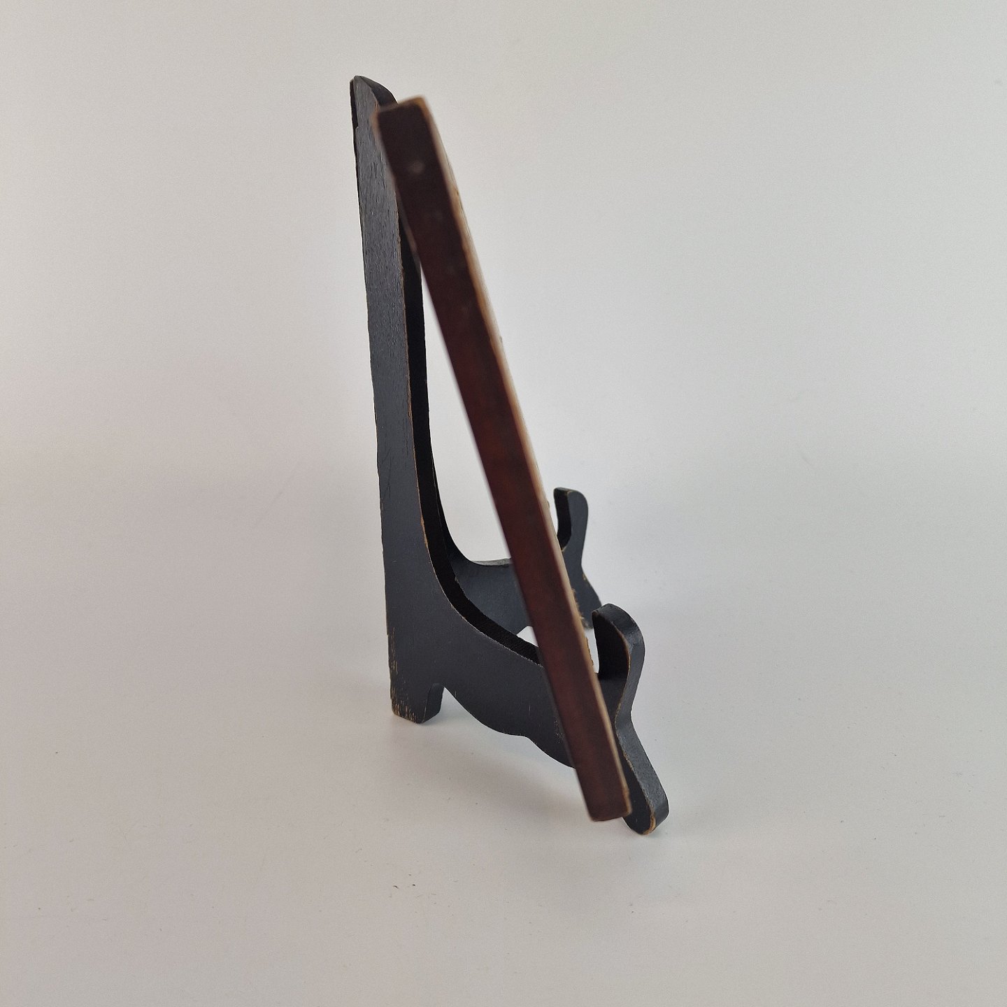 Indrammet landskabsmaleri i passepartout med motiv af et landskab, hvor en smal sti omgivet af træer fører beskueren frem til en lille hytte i det fjerne.