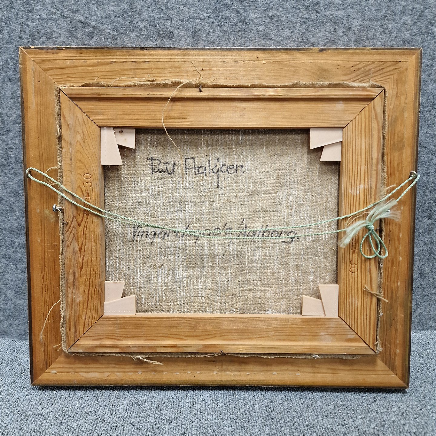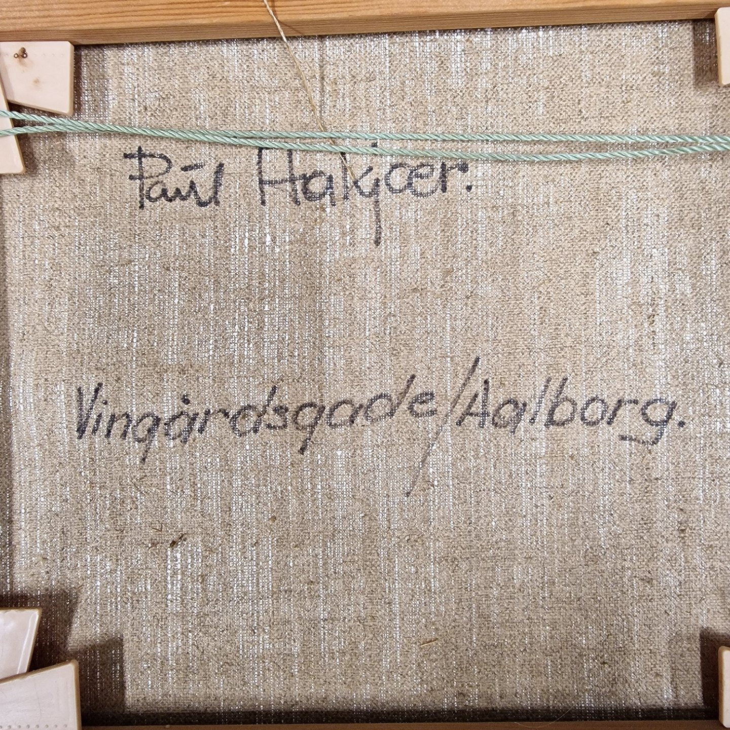 Oliemaleri på lærred. Maleriet er i impressionistisk stil med byskabsportræt af Vingårdsgade i Aalborg