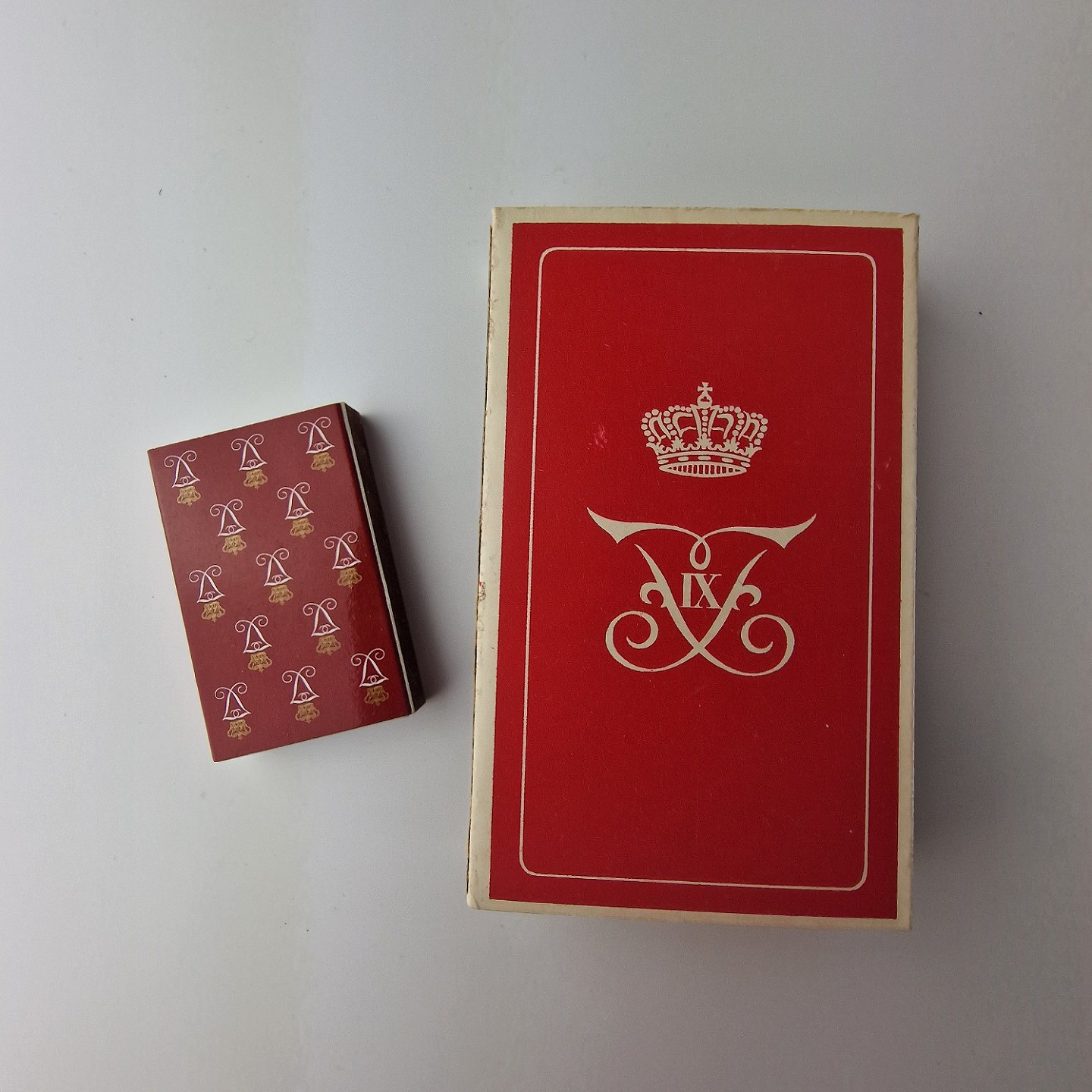 26 stk tændstikæsker med kongelig monogram. De er brugt ved det Danske Kongelige Hof ved festlige lejligheder.