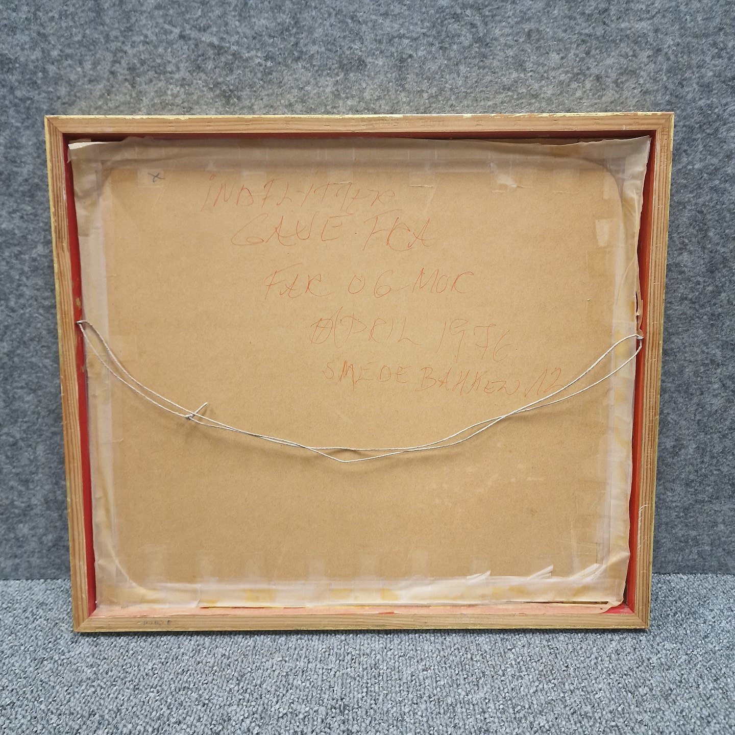 Indrammet litografi i passepartout med gylden træramme. Grafisk tryk i kubistisk stil med byskabsmotiv fra Færøerne no 200/300. Tekst på bagsiden.