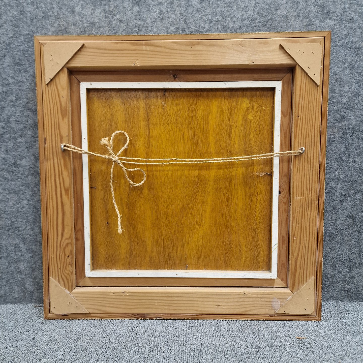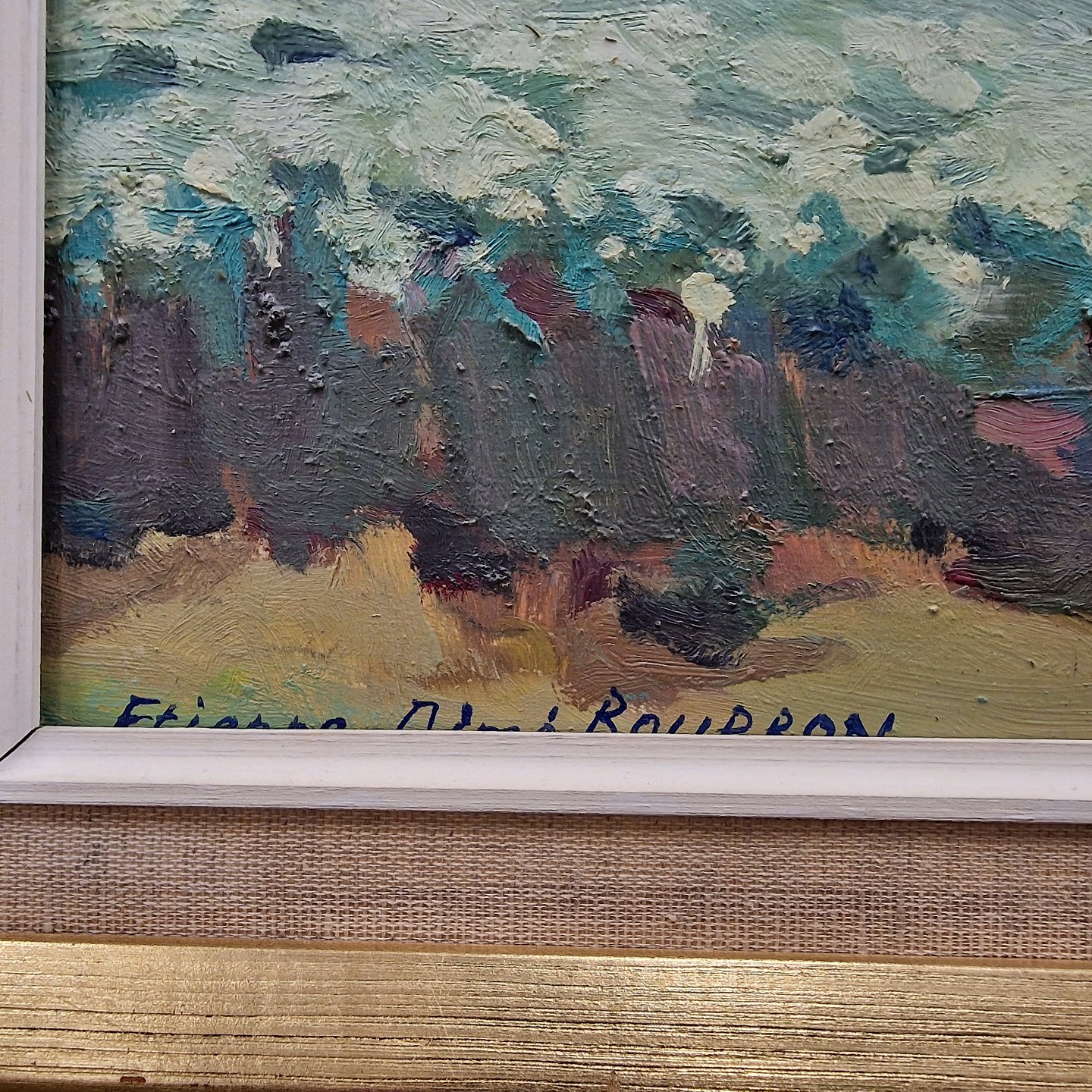 Oliemaleri på plade. Landskabsmaleri med motiv af vandtrug ved eng.