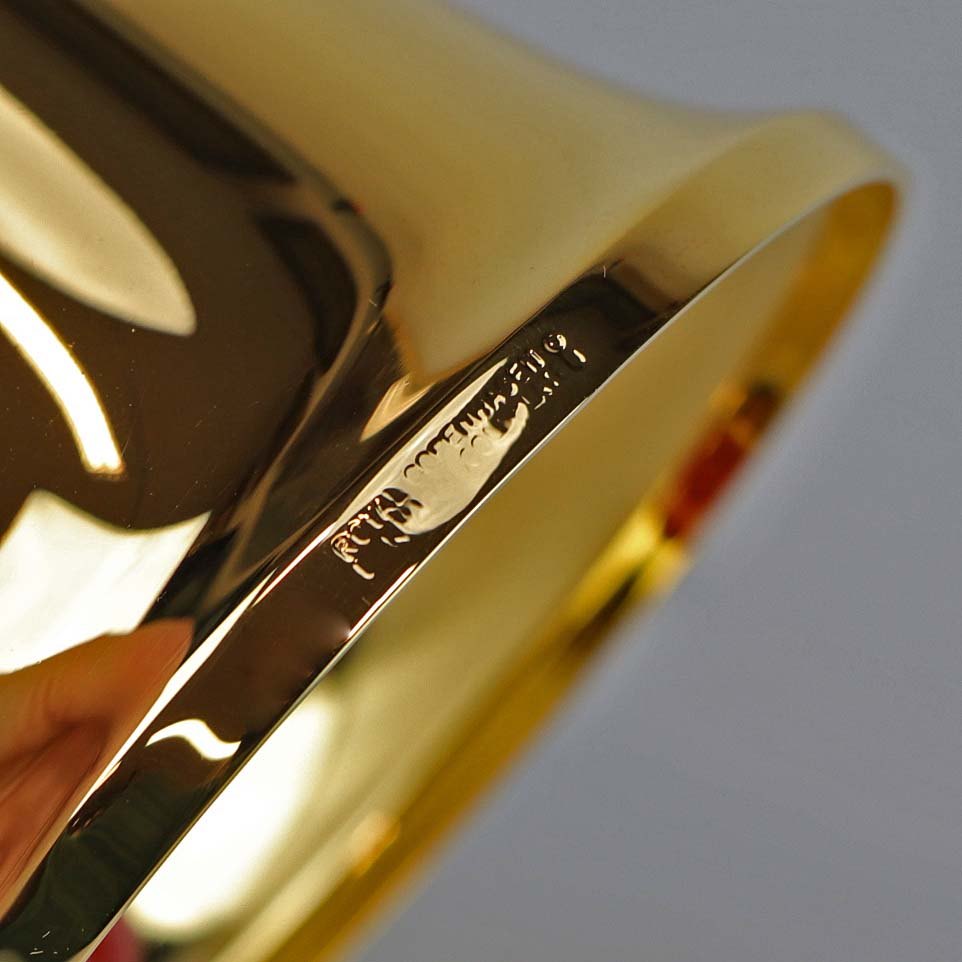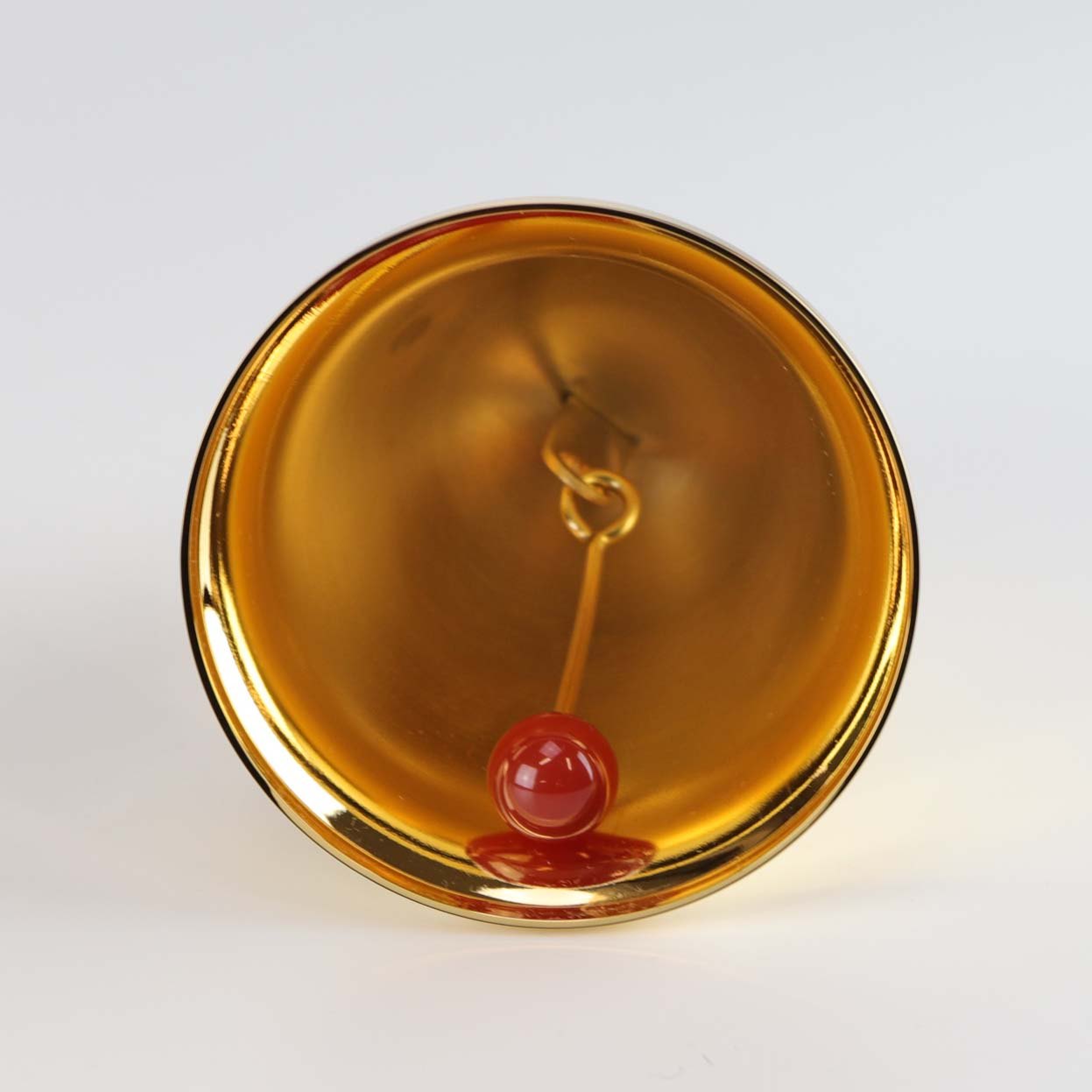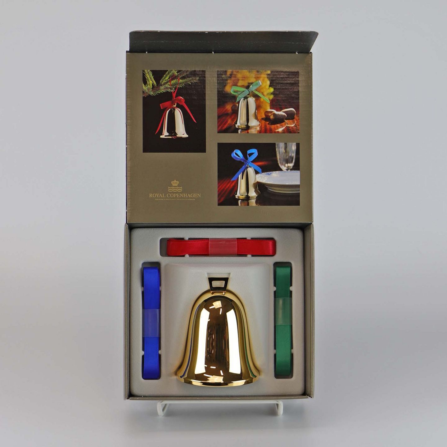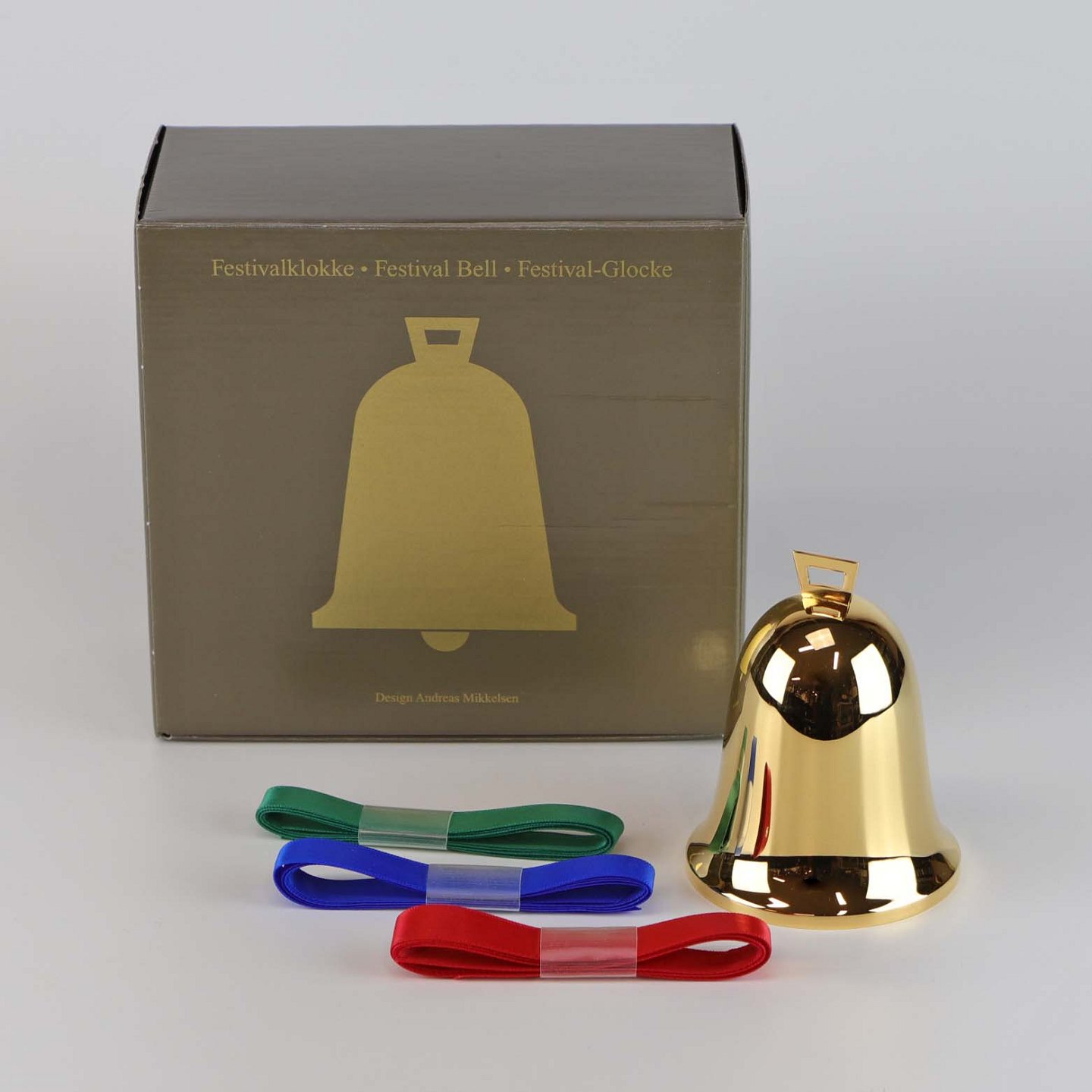 Festivalklokke af forgyldt messing. 3 bånd medfølger og alt leveres i original æske.