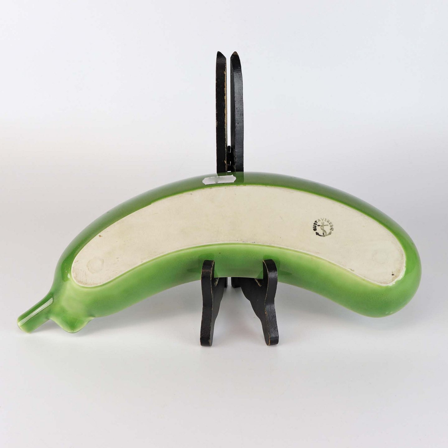 Fad i fajance formet og malet som en agurk. Originalt navn Gurkan