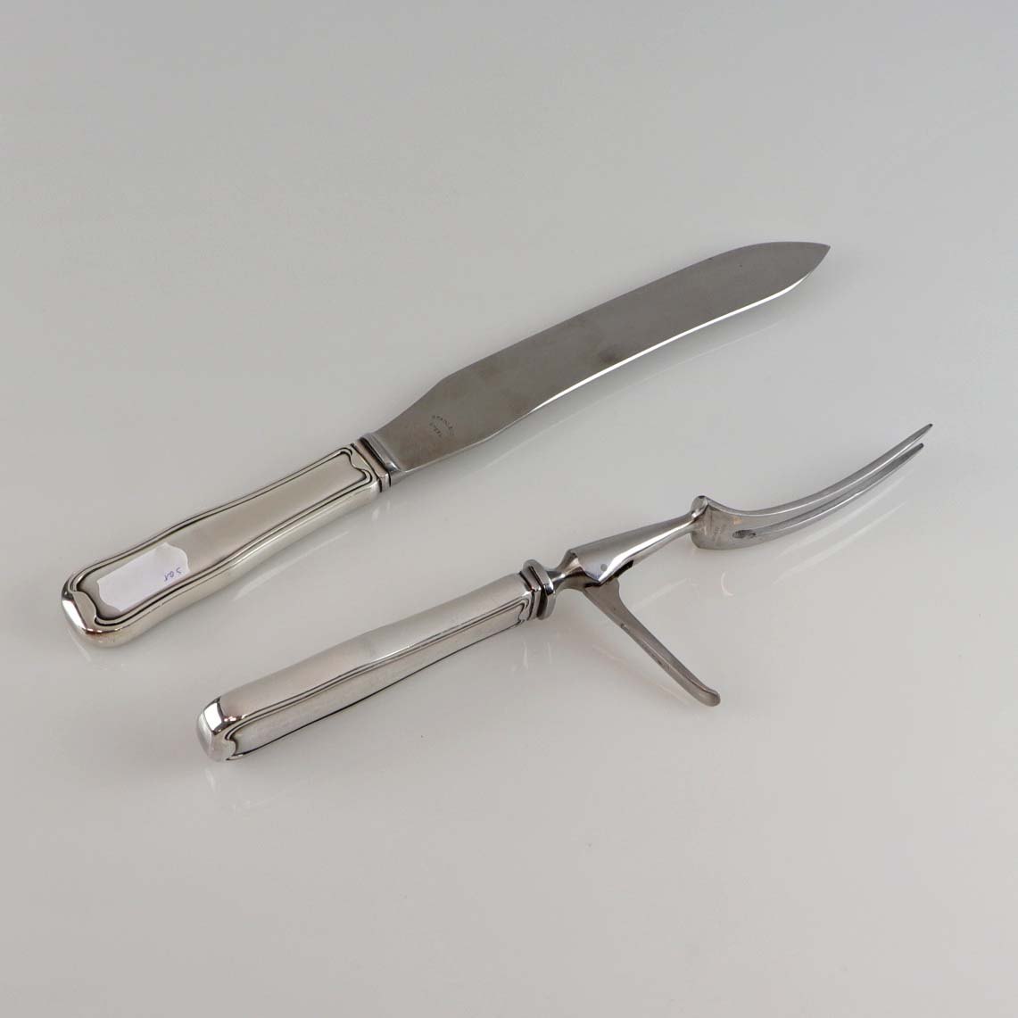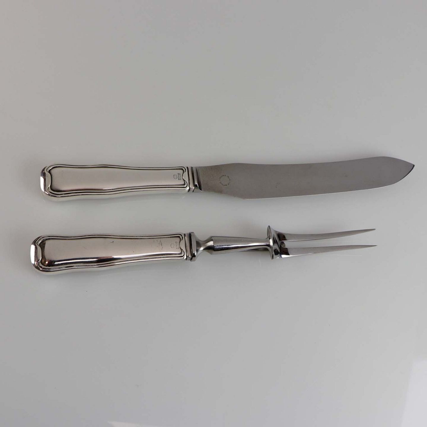 Dobbeltriflet forskærersæt i sterling sølv med knivblad i rustfrit stål