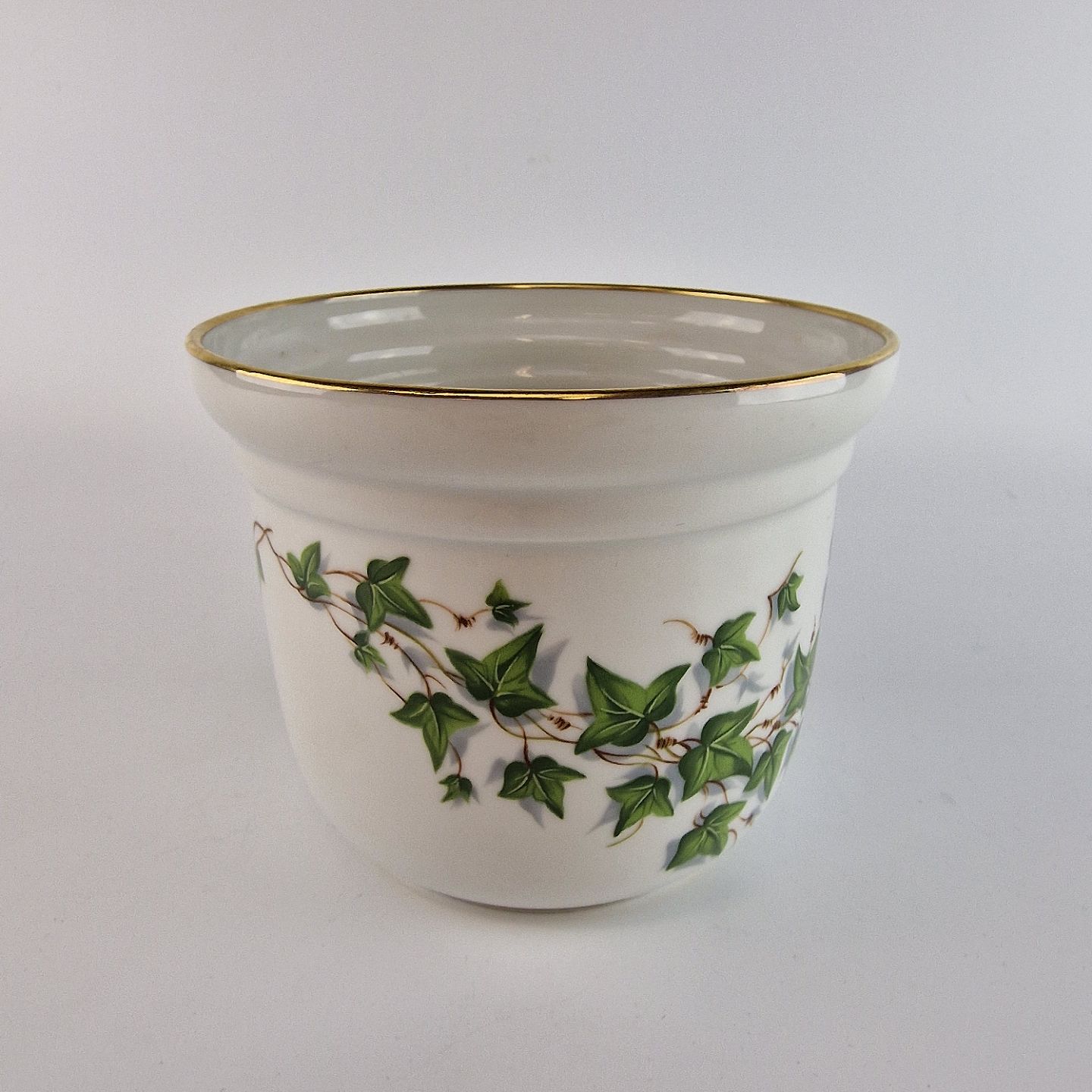 Urtepotteskjuler med motiv af efeu og med guldkant. No 668
