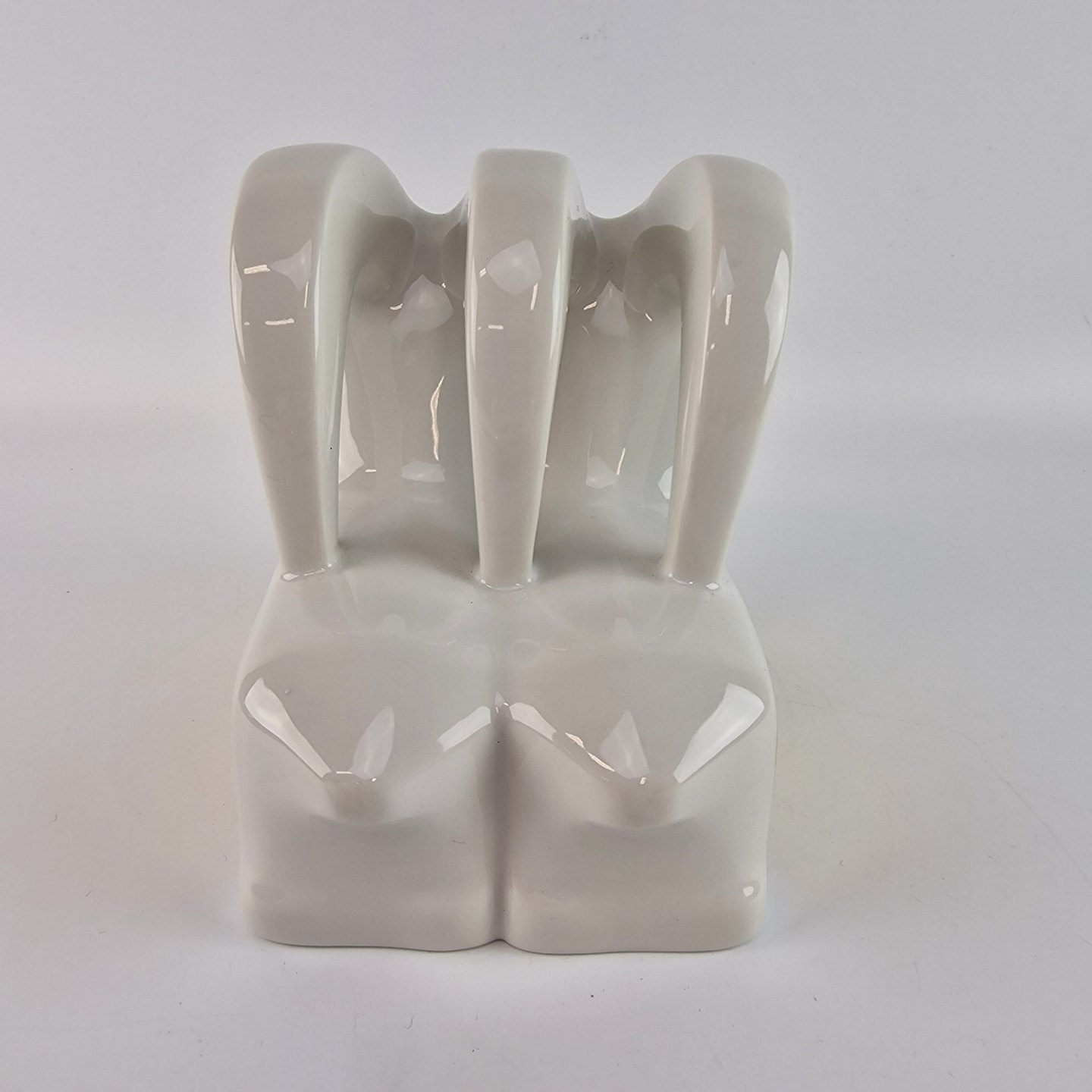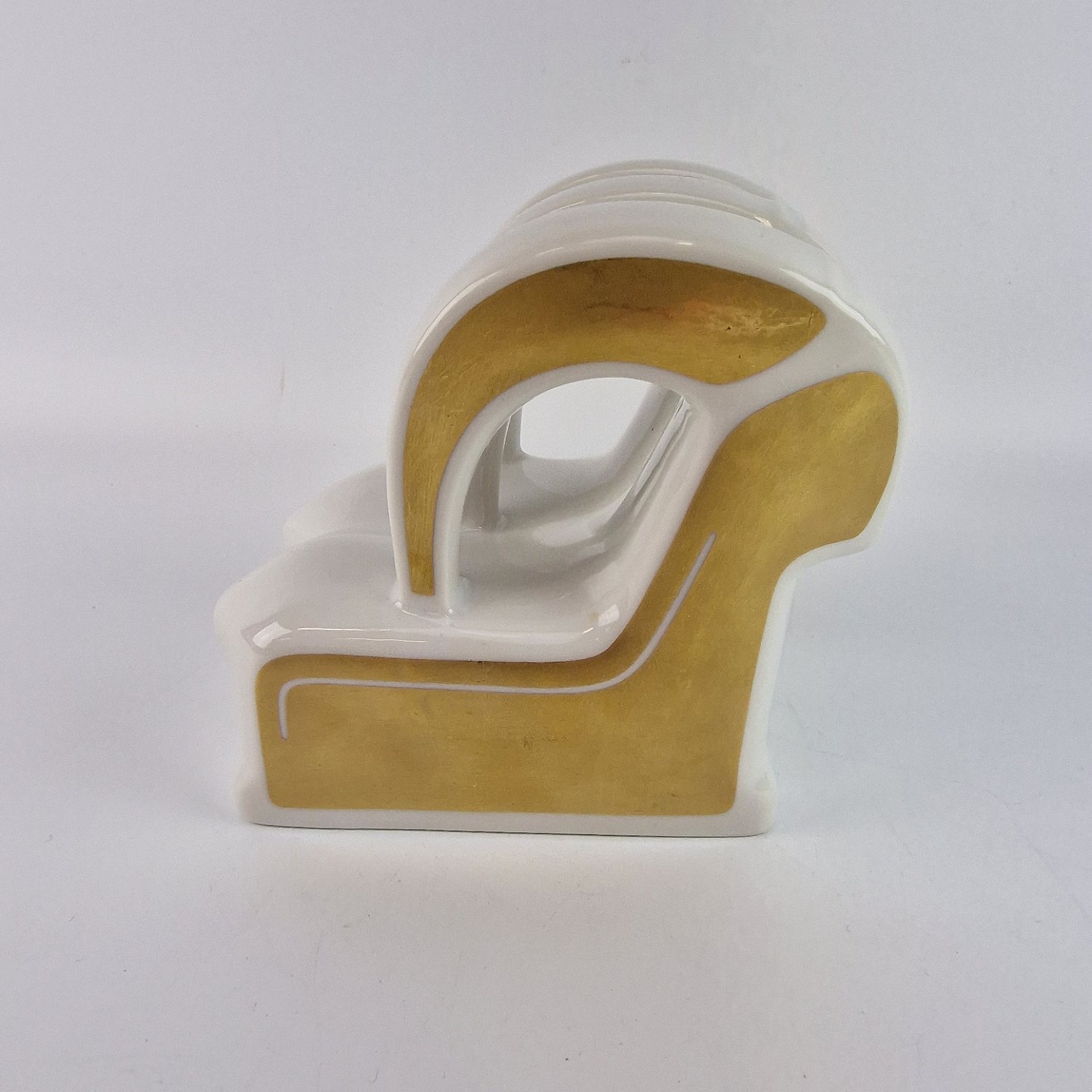 Figur af hvidt glaseret porcelæn med guld detaljer. Figuren forstiller to gedebukke