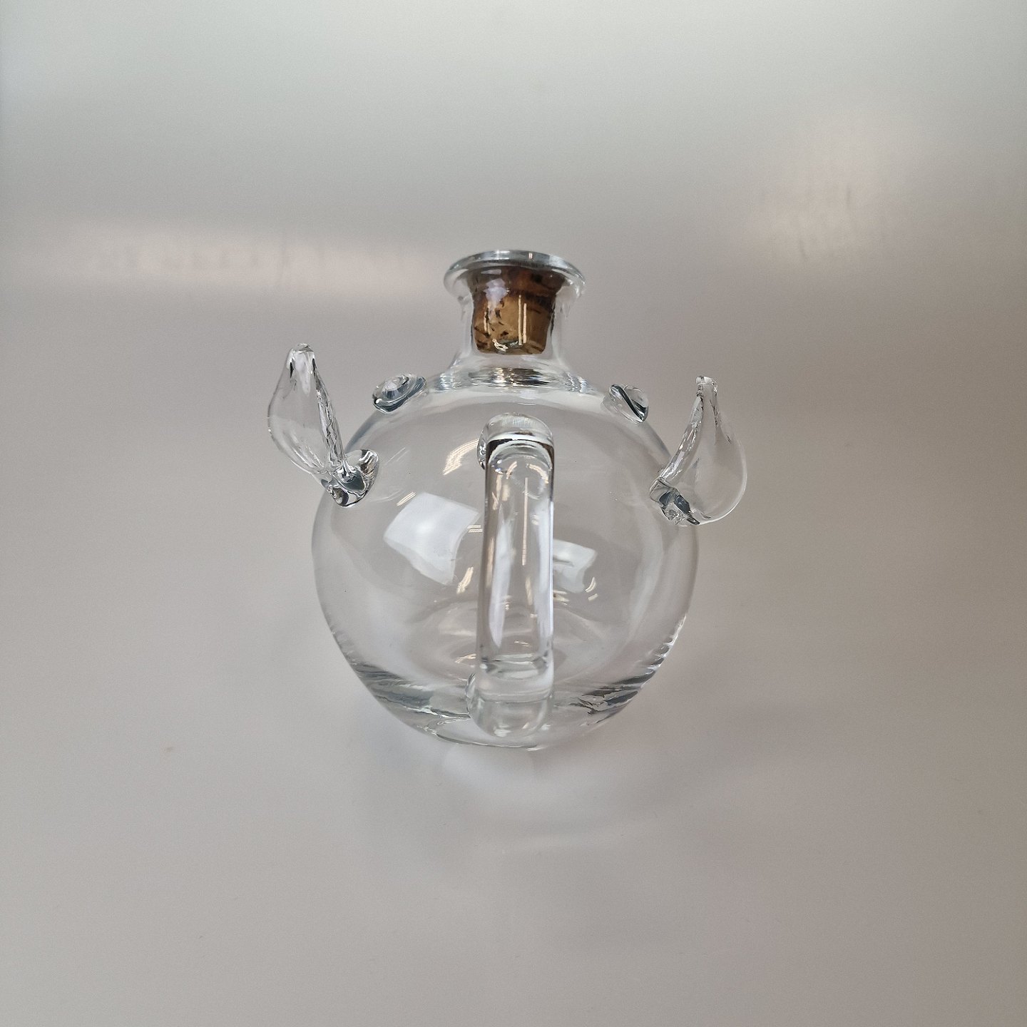 Glas karaffel formet som en gris. Prop i trynen