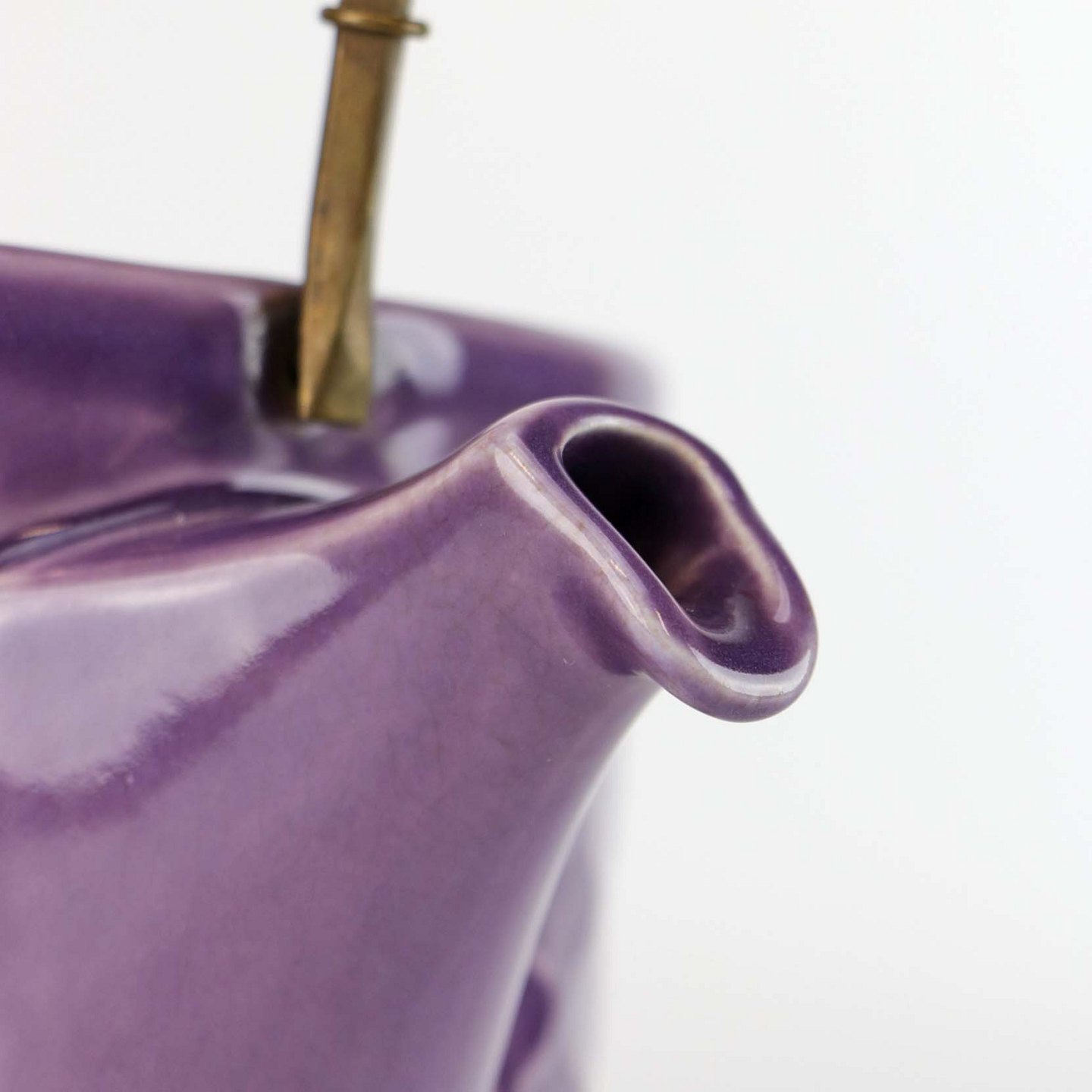 Sjælden tekande i stentøj med hank i messing omgivet af naturflet fra stellet Lilla Cordial no 656