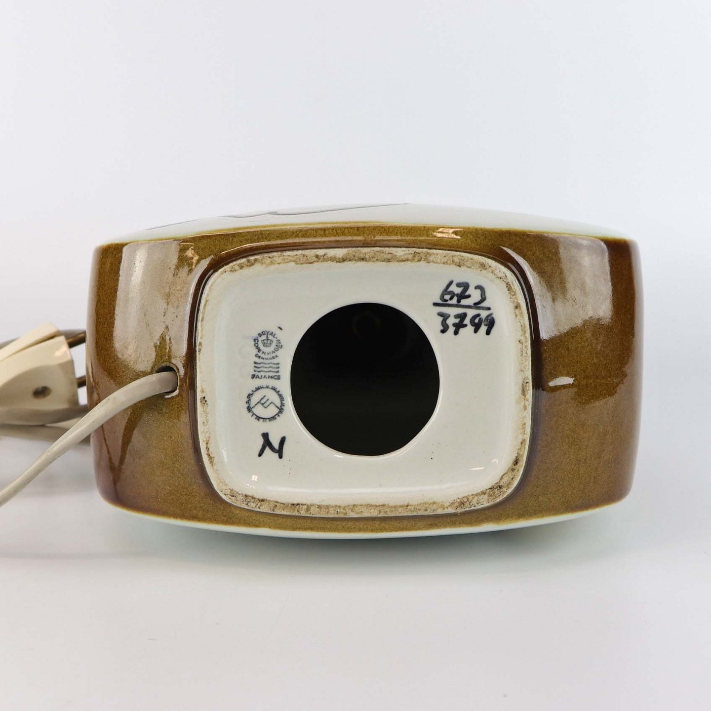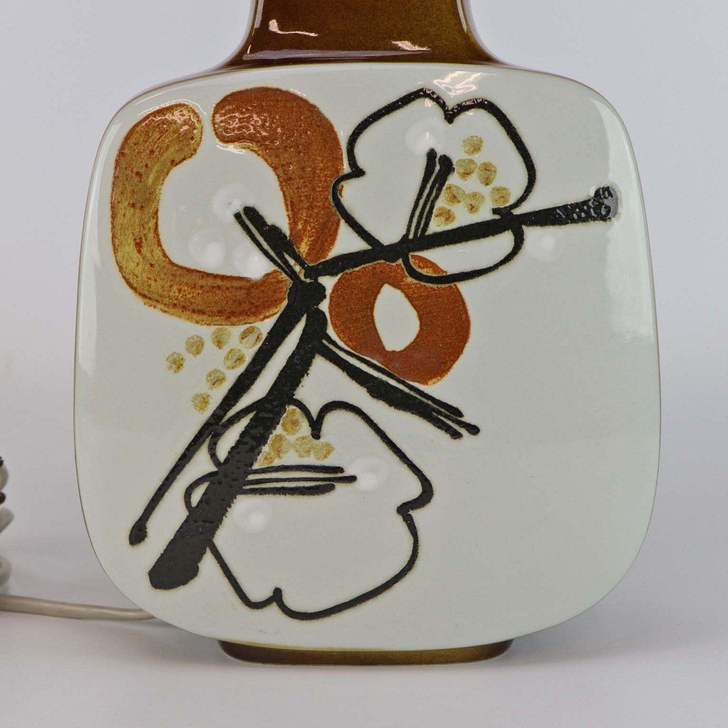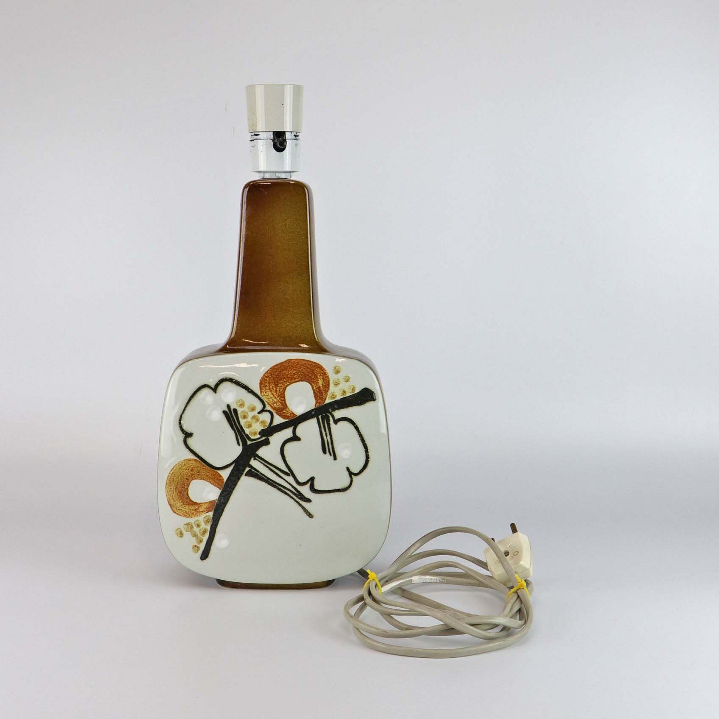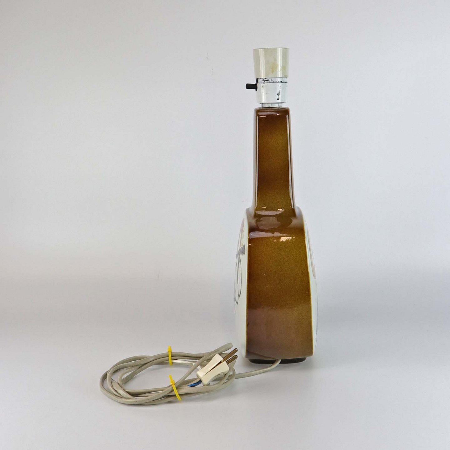 Bordlampe i fajance med abstrakt mønster i brune og gyldne farver no 673/3799
