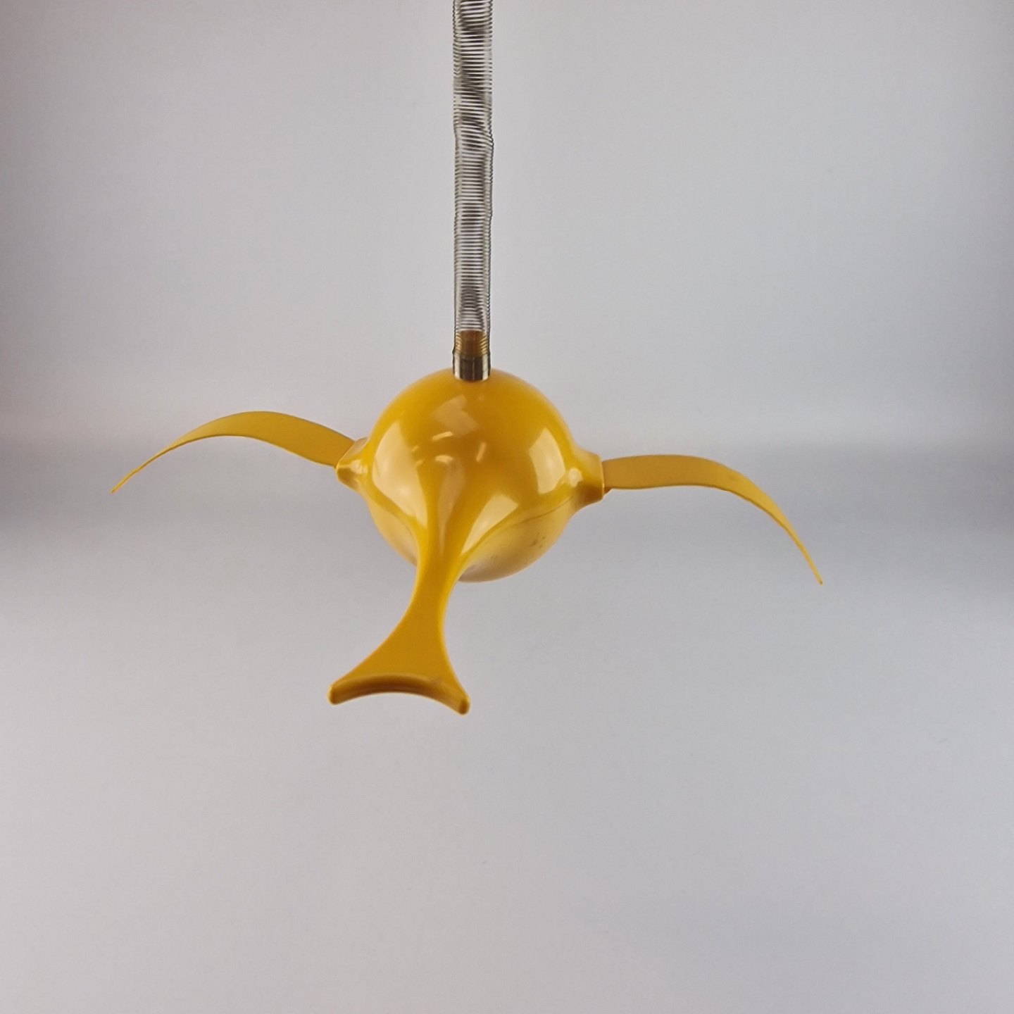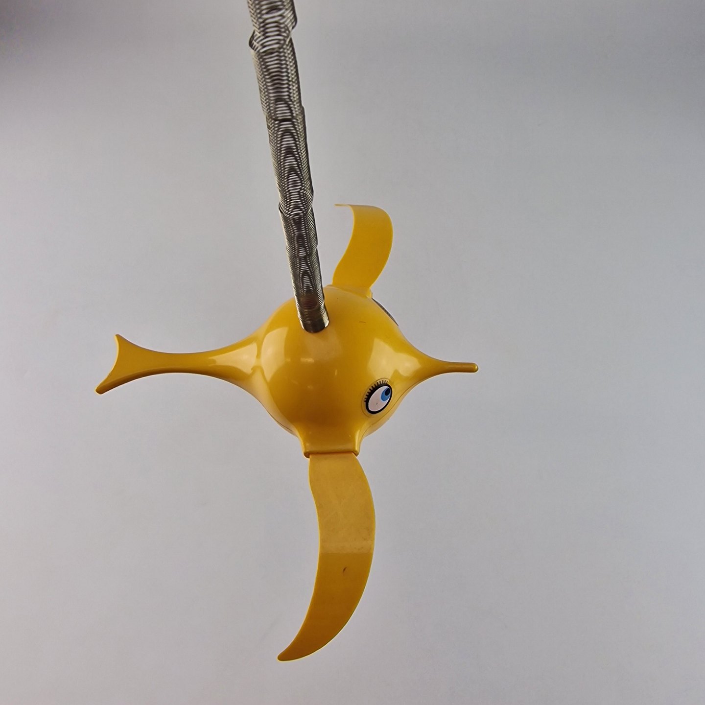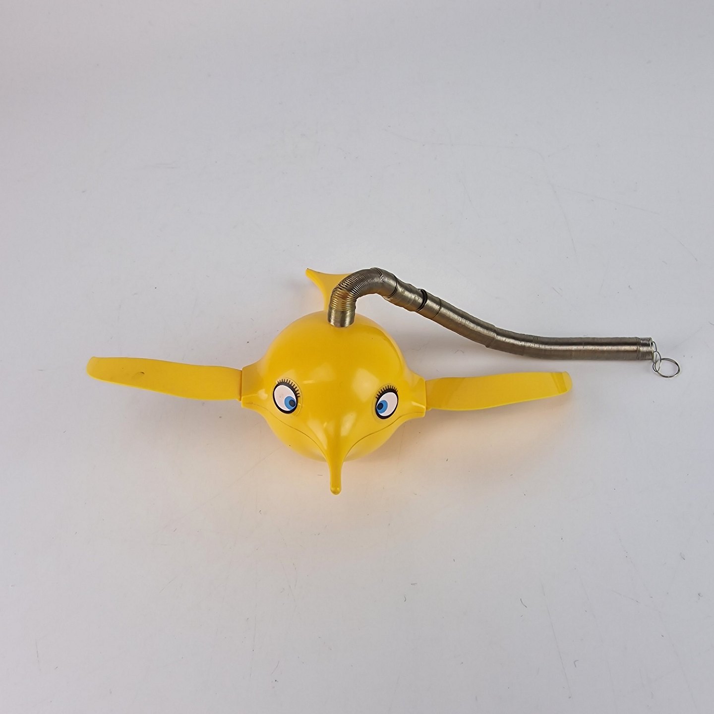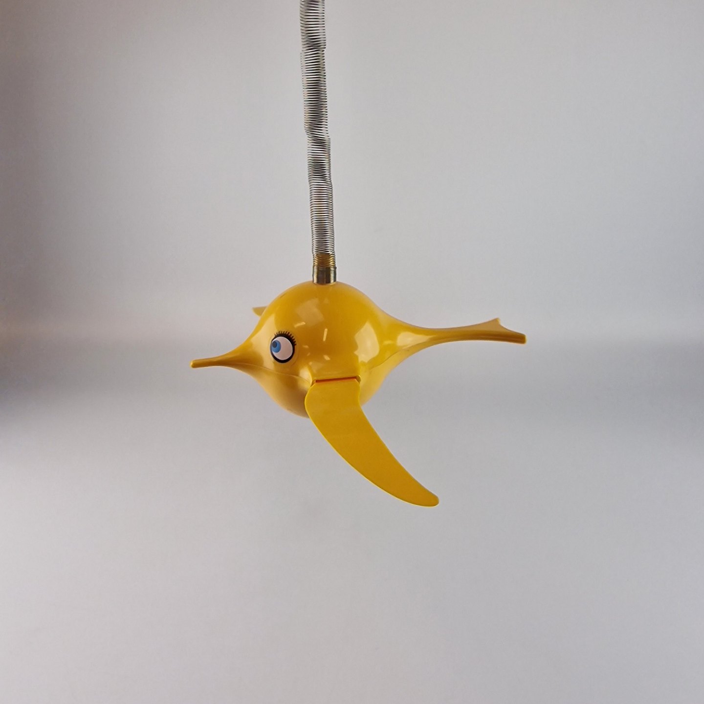 Vintage Hoptimist uro model Busy Birdie i gul plast med metal ophæng