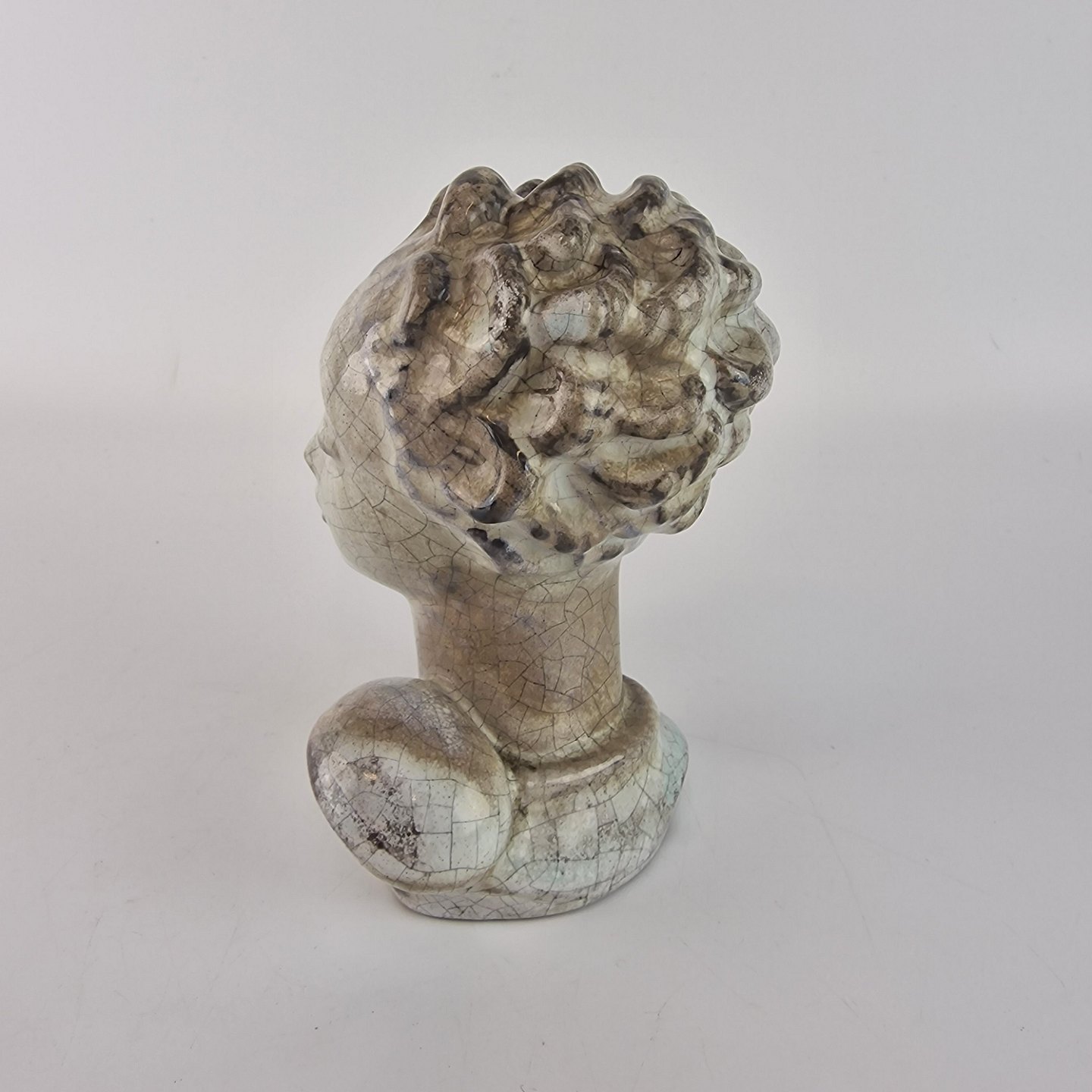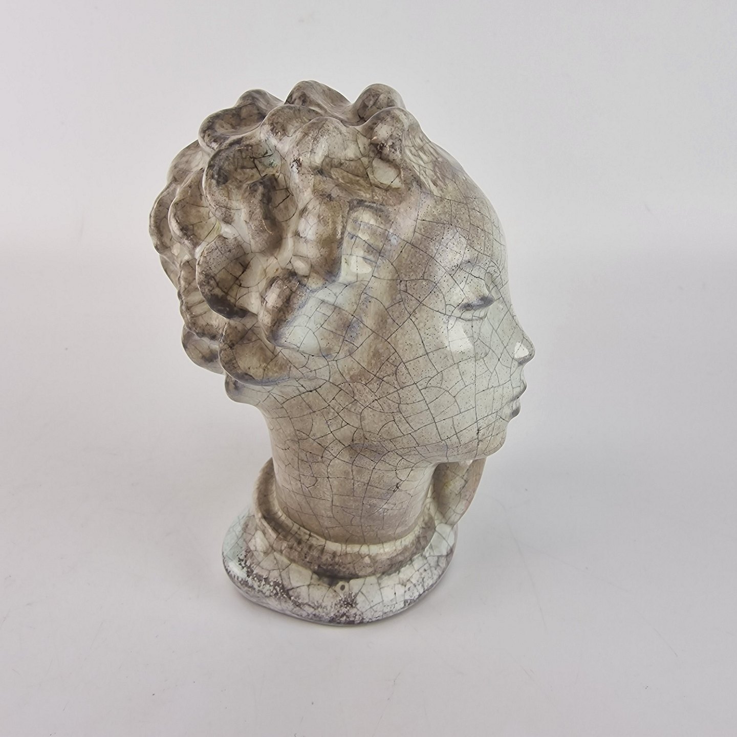 Buste af keramik formet som et kvindehoved. Glaseringen er krakeleret