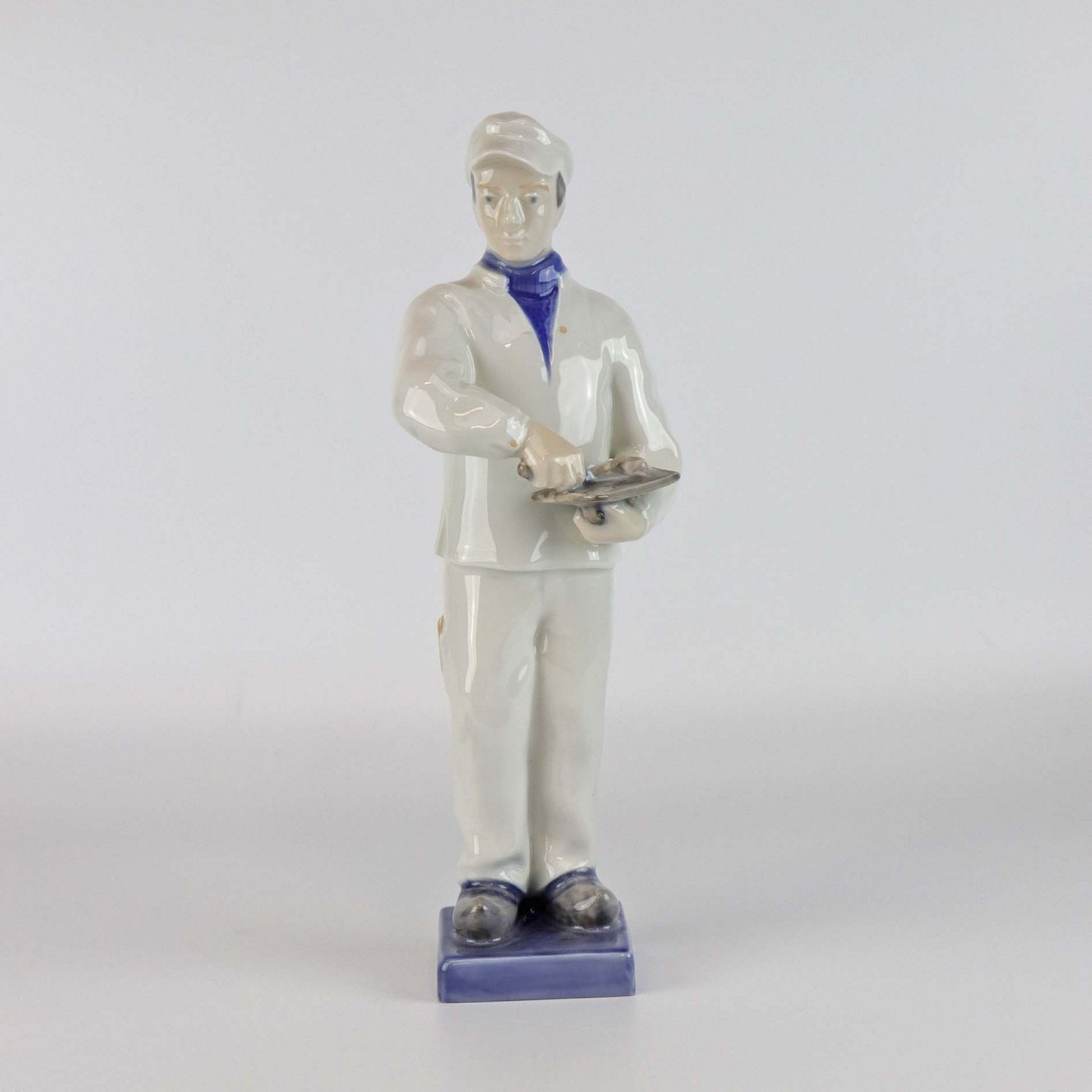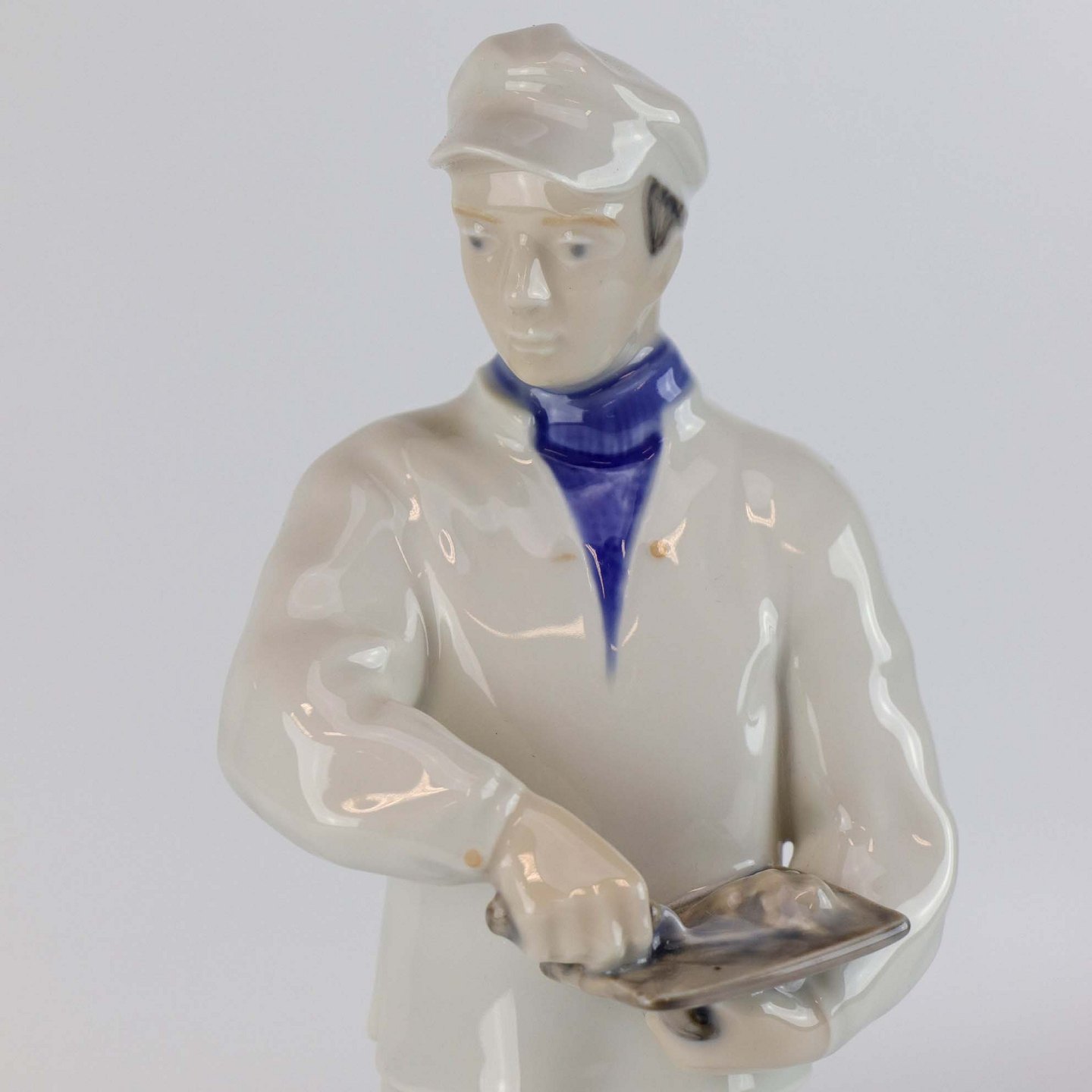 Figur af porcelæn, forestiller en murer med værktøj i hænderne. Nr. 4377